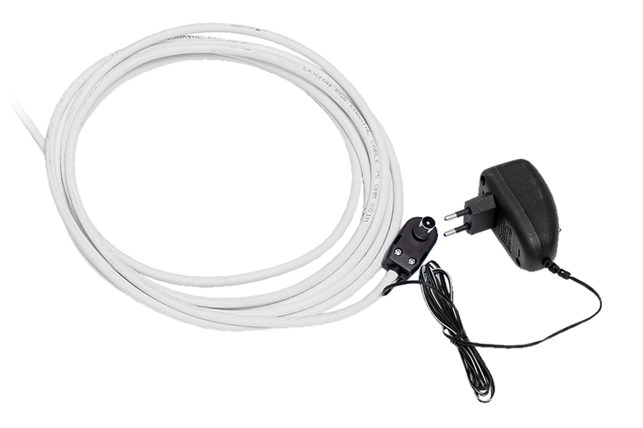 Produkt jest wyposażony w zasilacz, czuły wzmacniacz oraz kabel o długości 5m. Antena jest odporna na przypadkowy upadek z wysokości do 1m. Zastosowanie elementów z anten zewnętrznych umożliwia umiejscowienie produktu na zewnątrz stosując uchwyt zewnętrzny(w zestawie).