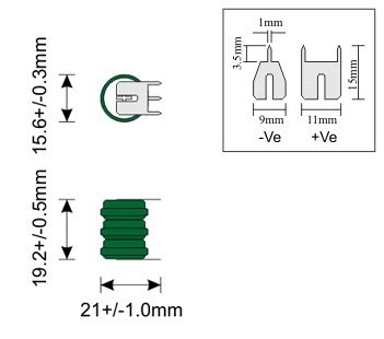 - Wymiary: 15,6x19,2x21mm