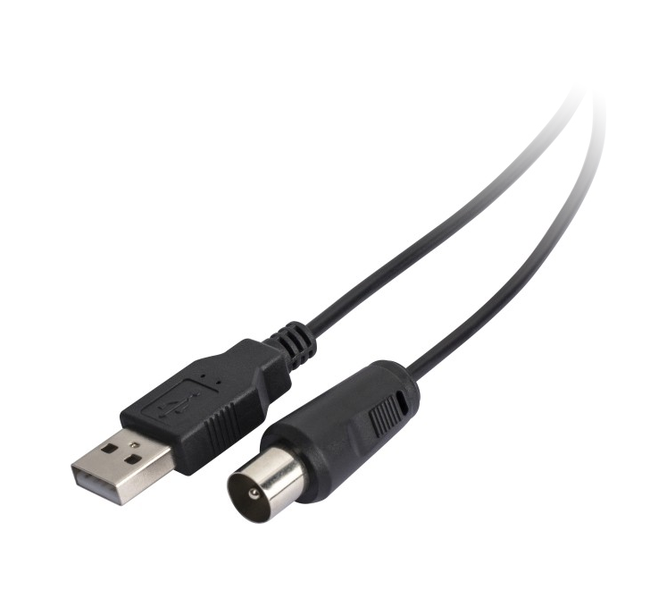 Kabel antenowy 75 Ohm z wtykiem koncentrycznym 9,5 mm oraz wtykiem zasilającym z USB