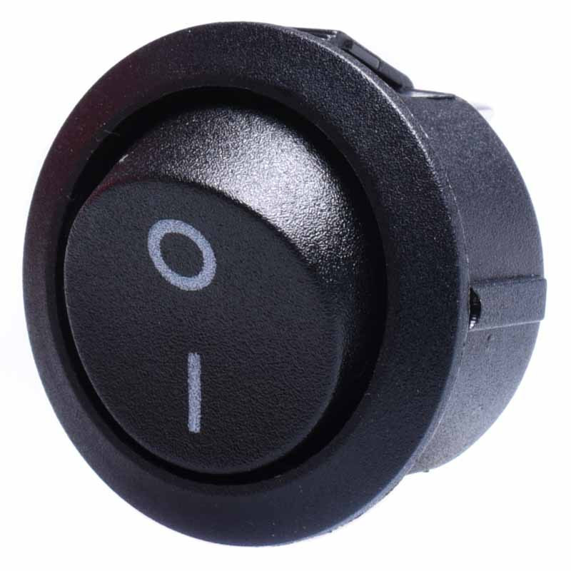 Przełącznik kołyskowy dwupozycyjny (ON-OFF) 12A/250V AC lub 20A/125V AC, okrągły, czarny.