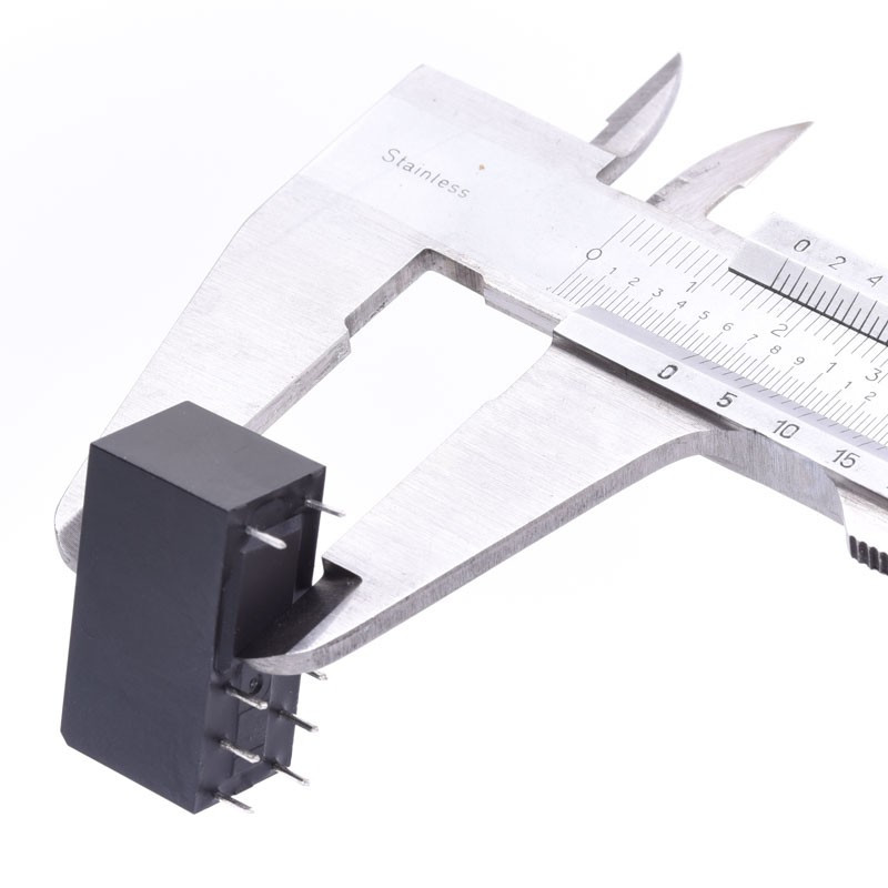 Miniaturowy przekaźnik elektromagnetyczny HONGFA HF115F-005-2ZS4 A (JQX115) z cewką zasilaną napięciem 5V DC z dwoma stykami przełącznymi o maksymalnym obciążeniu do 8 A przy napięciu zmiennym 250V.