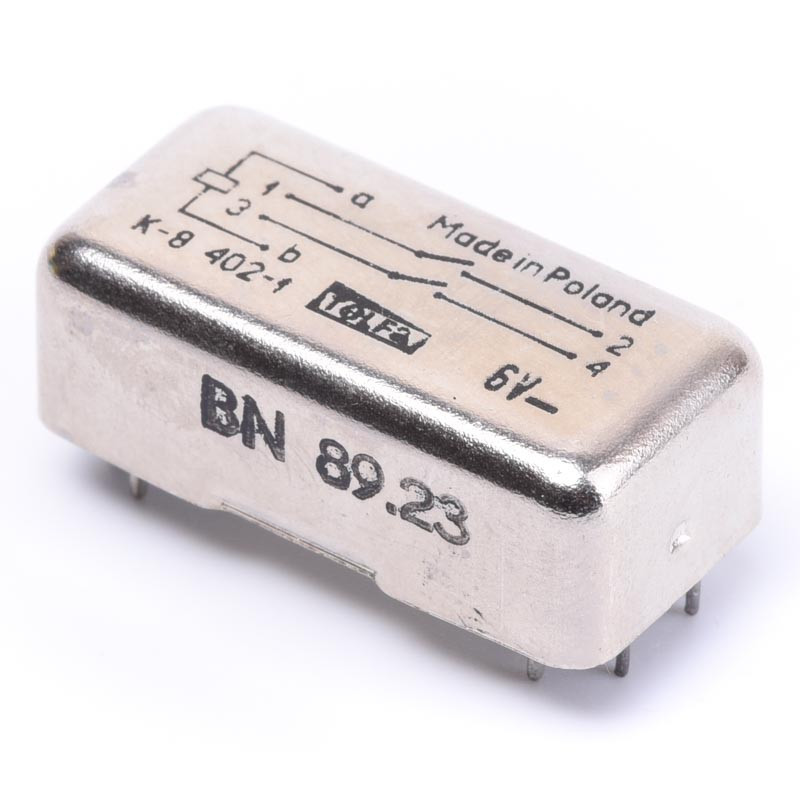 Przekaźnik kontaktronowy TELFA 6V K-8 402-1, hermetyczny, odporny na zanieczyszczenia. Znajduje zastosowanie w: