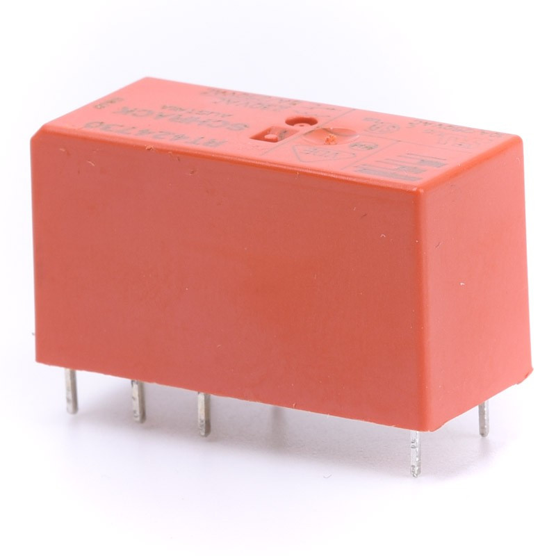 Miniaturowy przekaźnik elektromagnetyczny SCHRACK / TE Connectivity RT424730 o napięciu znamionowym cewki 230V AC i dwóch parach styków przełącznych o maksymalnym obciążeniu do 8A przy napięciu 250V AC. Styki robocze można ze sobą mostkować w celu zwiększenia maksymalnego obciążenia. Dzięki zastosowaniu cewki na napięcie sieciowe, przekaźnik można wysterować napięciem bezpośrednio z gniazdka elektrycznego.