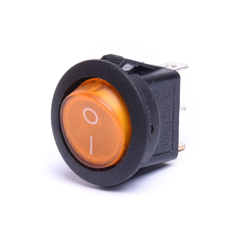 Przełącznik kołyskowy dwupozycyjny (ON-OFF) 6A/250V AC, 10A/125V AC, okrągły, żółty, podświetlany.