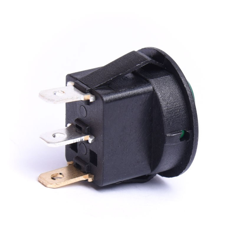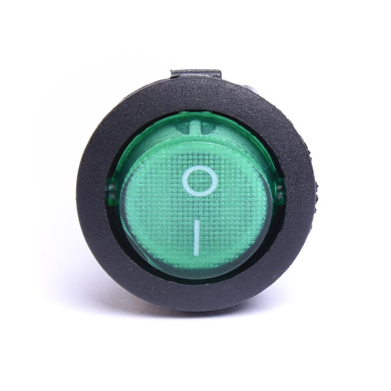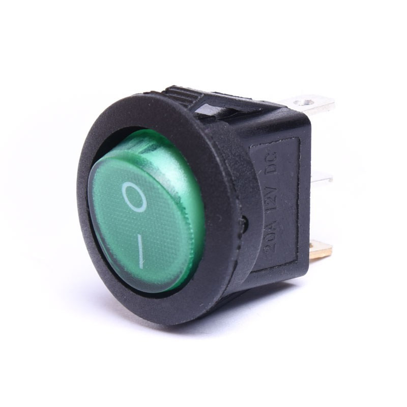 Przełącznik kołyskowy dwupozycyjny (ON-OFF) 12V DC, okrągły, zielony, podświetlany.