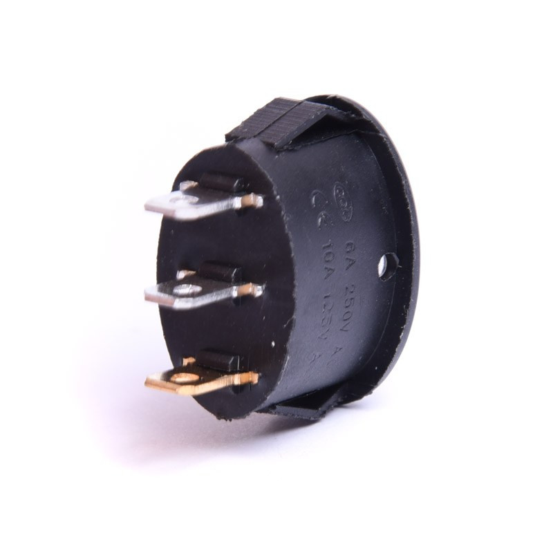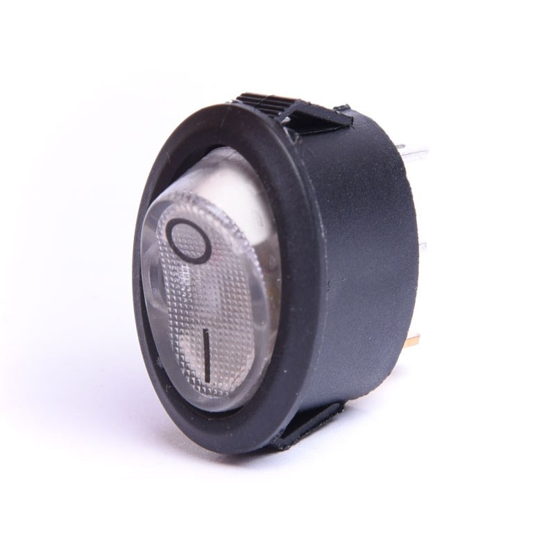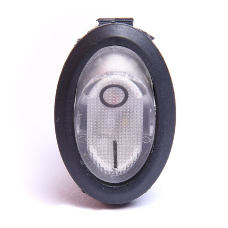 Przełącznik kołyskowy dwupozycyjny (ON-OFF) 6A/250V AC lub 10A/125V AC, owalny, biały, podświetlany.