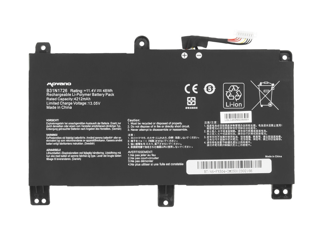 ✅ Pełna kompatybilność – zaprojektowany specjalnie z myślą o wybranym modelu laptopa, gwarantuje idealne dopasowanie i bezproblemową pracę. ✅ Długa żywotność – nawet do 500 cykli ładowania bez znaczącej utraty pojemności. ✅ Nowoczesne ogniwa klasy A producenta Zhuoneng – zapewniają stabilne napięcie, długą pracę na jednym ładowaniu i wysoką efektywność energetyczną. ✅ Bezpieczeństwo – wbudowany układ (BMS – Battery Management System) zabezpiecza przed przegrzaniem, przepięciem, przeciążeniem i głębokim rozładowaniem. ✅ Brak efektu pamięci – baterię można ładować w dowolnym momencie, bez ryzyka obniżenia pojemności. ✅ Niska podatność na samorozładowanie – akumulator zachowuje energię nawet po dłuższym czasie nieużytkowania. ✅ Świetny stosunek jakości do ceny – łączy korzystną cenę z najwyższą jakością wśród zamienników, stanowiąc doskonałą alternatywę dla oryginalnych baterii. ✅ Ekologiczny wybór – zgodność z dyrektywą RoHS oraz normami CE świadczy o trosce o środowisko i najwyższych standardach produkcji.