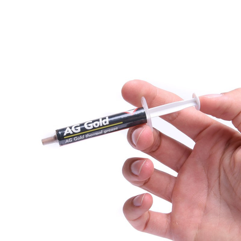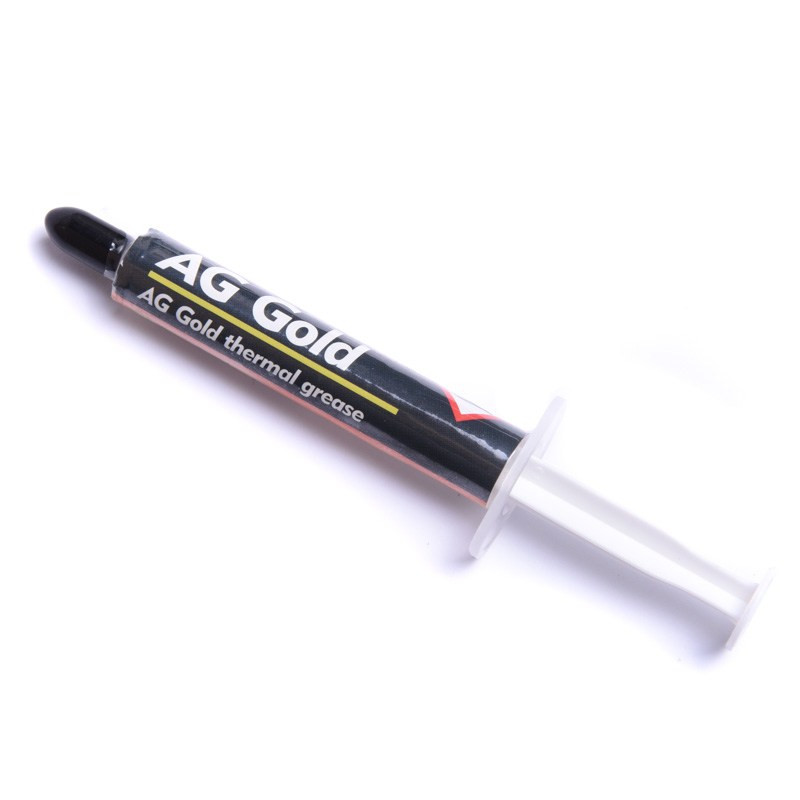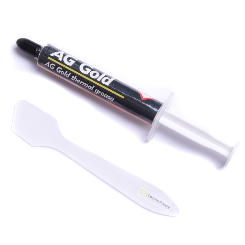AG Gold to wysokiej jakości pasta termoprzewodząca. Dzięki wysokiej, bo wynoszącej aż 45% zawartości złota, jej przewodność cieplna jest 3 razy wyższa, niż w przypadku normalnych past termoprzewodzących. Pozwala to na obniżenie temperatury procesora o około 6 stopni, nawet bez zmiany radiatora. Pasta stanowi najlepszą alternatywę dla overclockerów [overclockers].