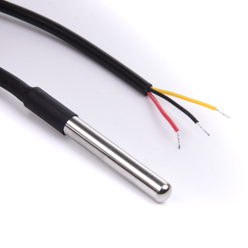 DS18B20 to wodoodporny czujnik temperatury. Czujnik na kablu długości 1 metr.