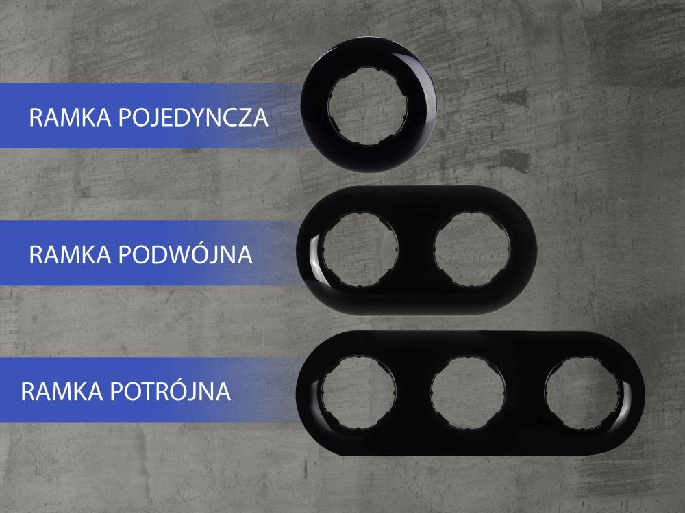- Ramka pojedyncza - o średnicy 85mm z serii ramek owalnych (czarna - L034; biała - L033)