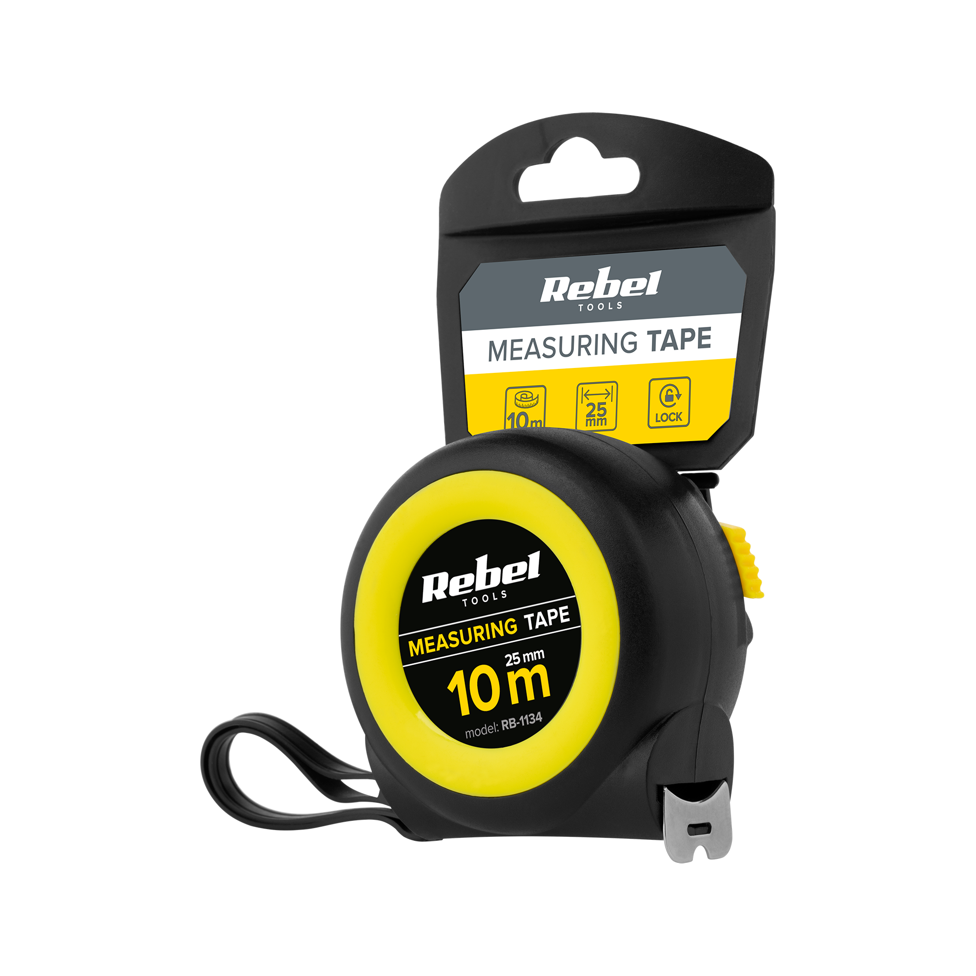 Taśma miernicza Rebel o zasięgu 10 m wykonana została ze stali, co w połączeniu z solidną obudową z tworzywa sztucznego gwarantuje dużą żywotność i odporność na uderzenia i inne uszkodzenia. Zaczep mierniczy oraz przycisk blokady, w połączeniu z dużą szerokością przyrządu (25 mm), ułatwiają dokładny pomiar dużych odległości bez podparcia, dzięki czemu samodzielnie poradzisz sobie z pomiarem niemal w każdej sytuacji.