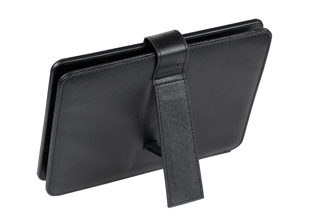 Pokrowiec posiada podstawkę, która umożliwia ustawienie urządzenia w pozycji ułatwiającej pisani, przeglądanie internetu itp.