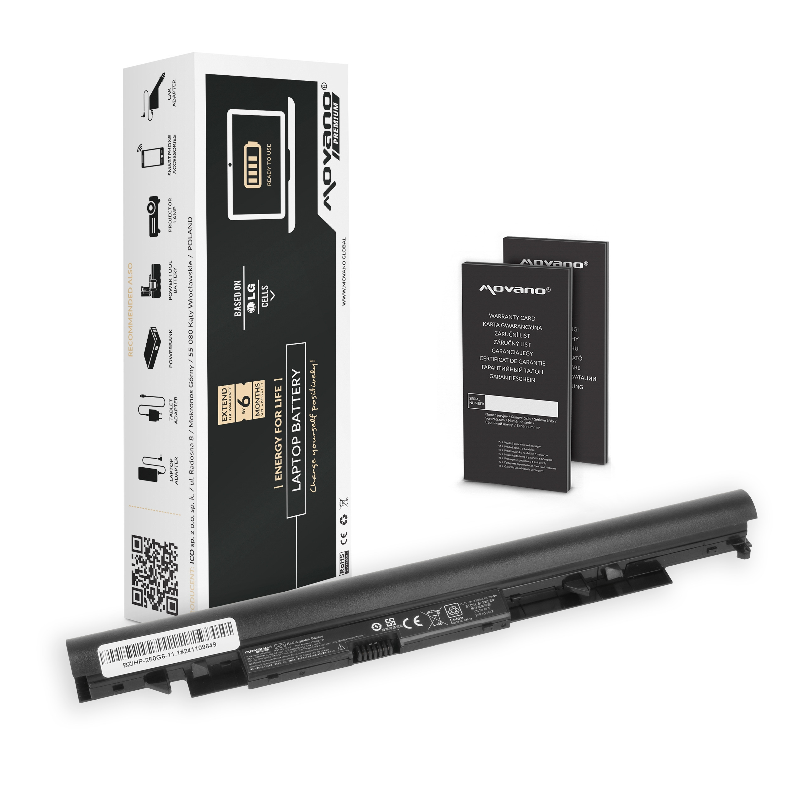 Dlaczego warto wybrać akumulator Movano Premium? ✅ Markowe ogniwa LG / Panasonic – stosowane również w akumulatorach oryginalnych. ✅ Długa żywotność i powolny spadek pojemności. ✅ Brak efektu pamięci i niska podatność na samoistne rozładowania. ✅ Podwyższona pojemność – często wyższa niż w oryginalnych odpowiednikach, co oznacza dłuższą pracę bez ładowania. ✅ Bezpieczeństwo – wbudowany układ BMS (Battery Management System) zabezpiecza przed przegrzaniem, przepięciem, przeciążeniem i głębokim rozładowaniem. ✅ Pełna kompatybilność – zaprojektowana z myślą o konkretnych modelach laptopów, zapewnia idealne dopasowanie. ✅ Długotrwała wydajność – sprawność nawet do 3 lat w zależności od sposobu użytkowania. ✅ Kontrola jakości i zgodność z normami – spełnia wymagania CE, RoHS oraz ISO9001. Rozszerzona gwarancja 12 miesięcy gwarancji na ogniwa z możliwością bezpłatnego przedłużenia o 6 miesięcy 24 miesiące gwarancji na obudowę i elektronikęSzybka i bezproblemowa rejestracja przedłużonej gwarancji (szczegóły w Karcie Gwarancyjnej).