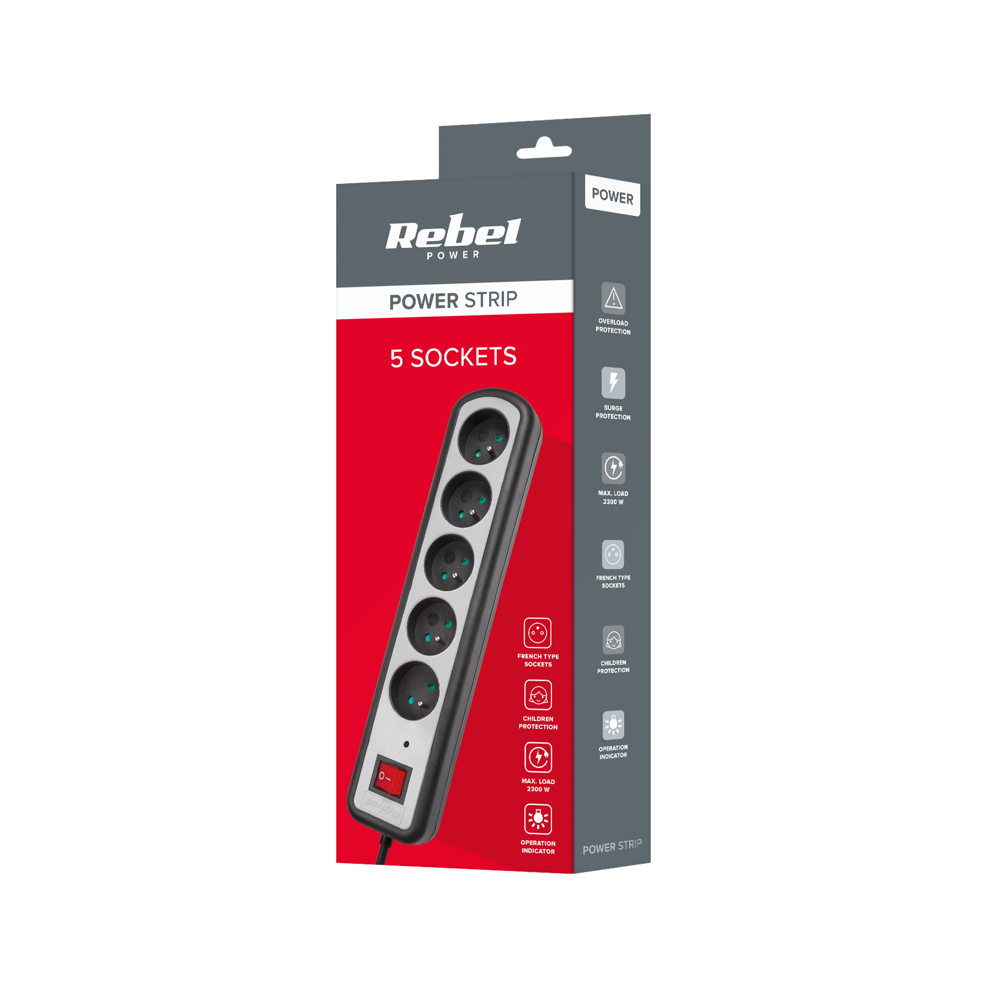 Listwa sieciowa Rebel to doskonałe rozwiązanie do zastosowania np. w gospodarstwie domowym lub biurze. Pięć gniazd o maksymalnym obciążeniu 2300 W gwarantuje swobodne podłączenie niezbędnych sprzętów.