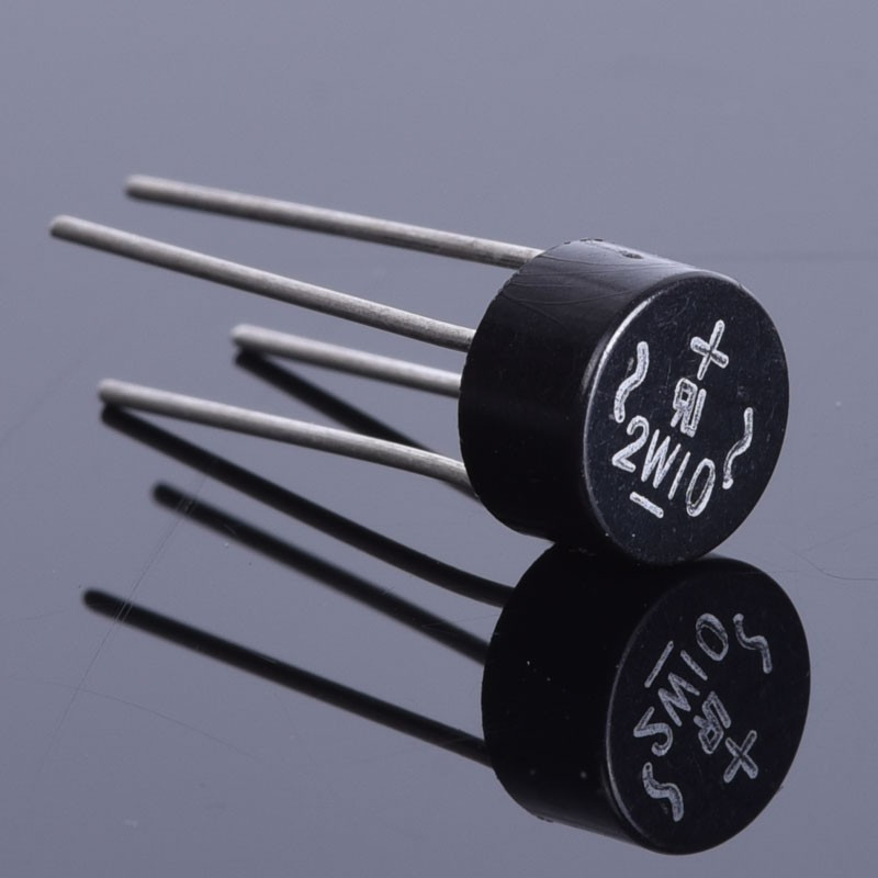 Mostek prostowniczy Gretza jednofazowy 2W10 2A/1000V, okrągły. Do montażu na płytce PCB.
