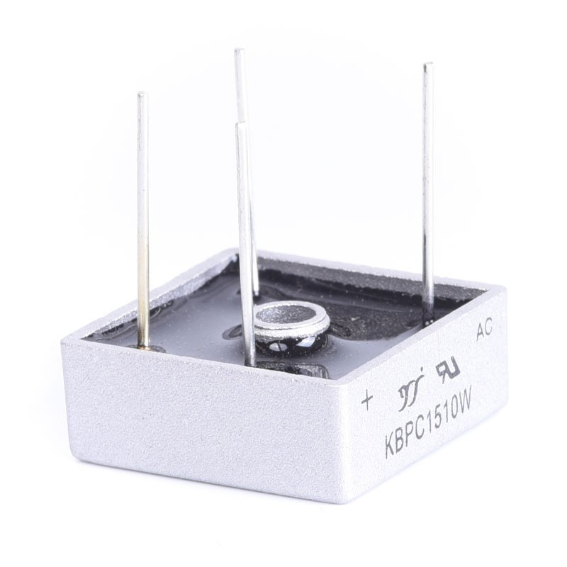 Mostek prostowniczy Gretza jednofazowy KBPC1510W 15A/1000V, w kształcie kostki. Do montażu na płytce PCB.