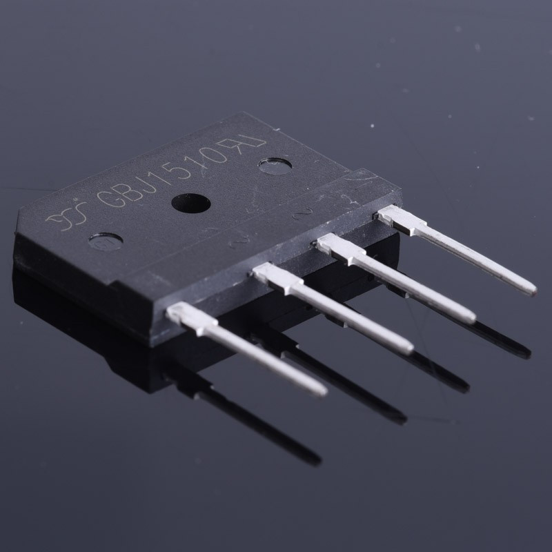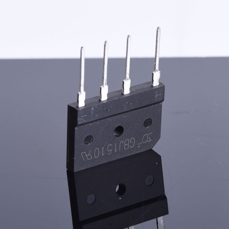 Mostek prostowniczy Gretza jednofazowy GBJ1510 15A/1000V, płaski, pionowy. Do montażu na płytce PCB.