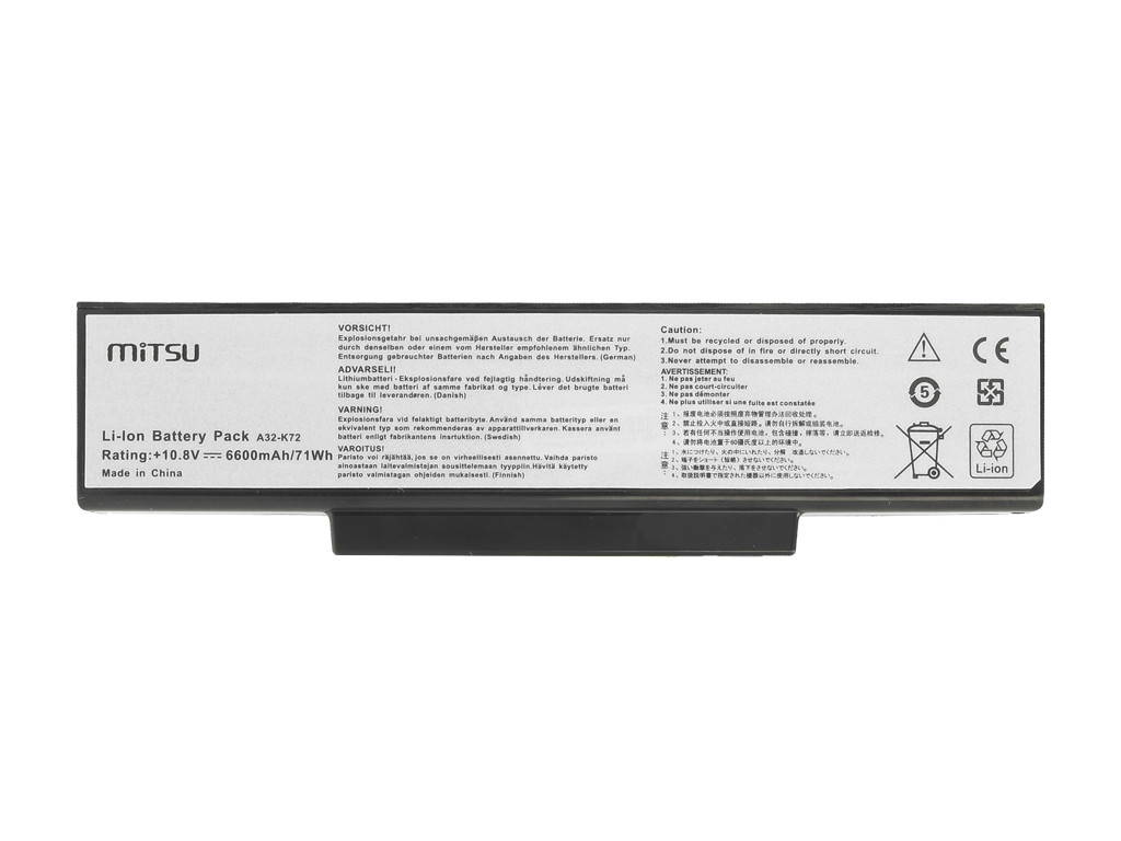 Bateria Mitsu do Asus K72, K73, N73, X77 (6600mAh)
