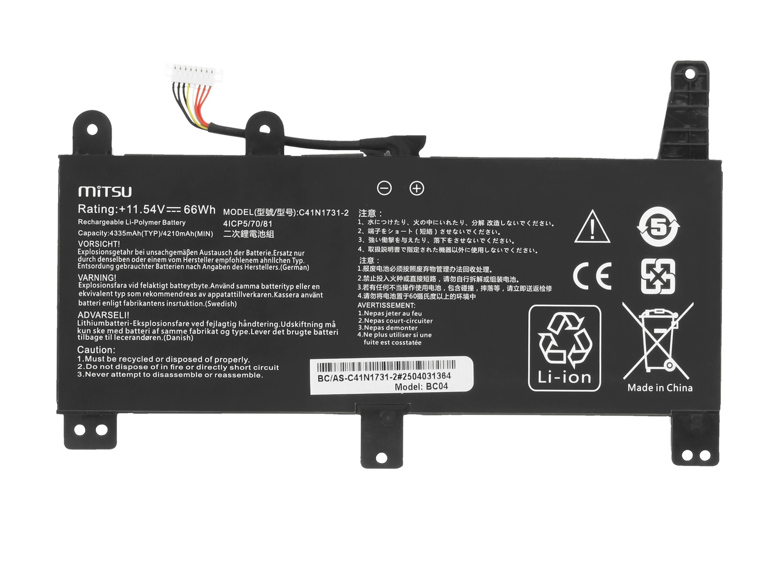 | Zamiennik | 0B200-03400200, 4ICP5/70/81, C41N1731, C41N1731-2, C41PNJ5, CA436981G |
