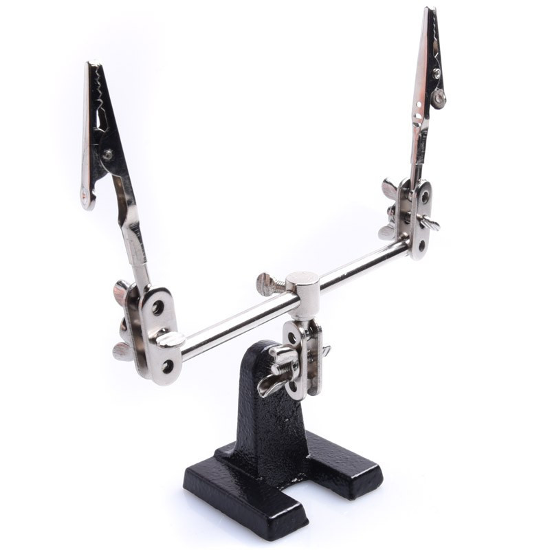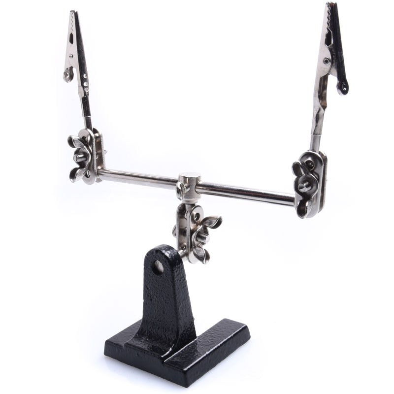 Uchwyt montażowy "trzecia ręka" z regulowanymi uchwytami. Narzędzie jest niezbędnym wyposażeniem warsztatu każdego elektronika, umożliwia swobodną pracę dwóch rąk przy lutowaniu elementów elektronicznych.
