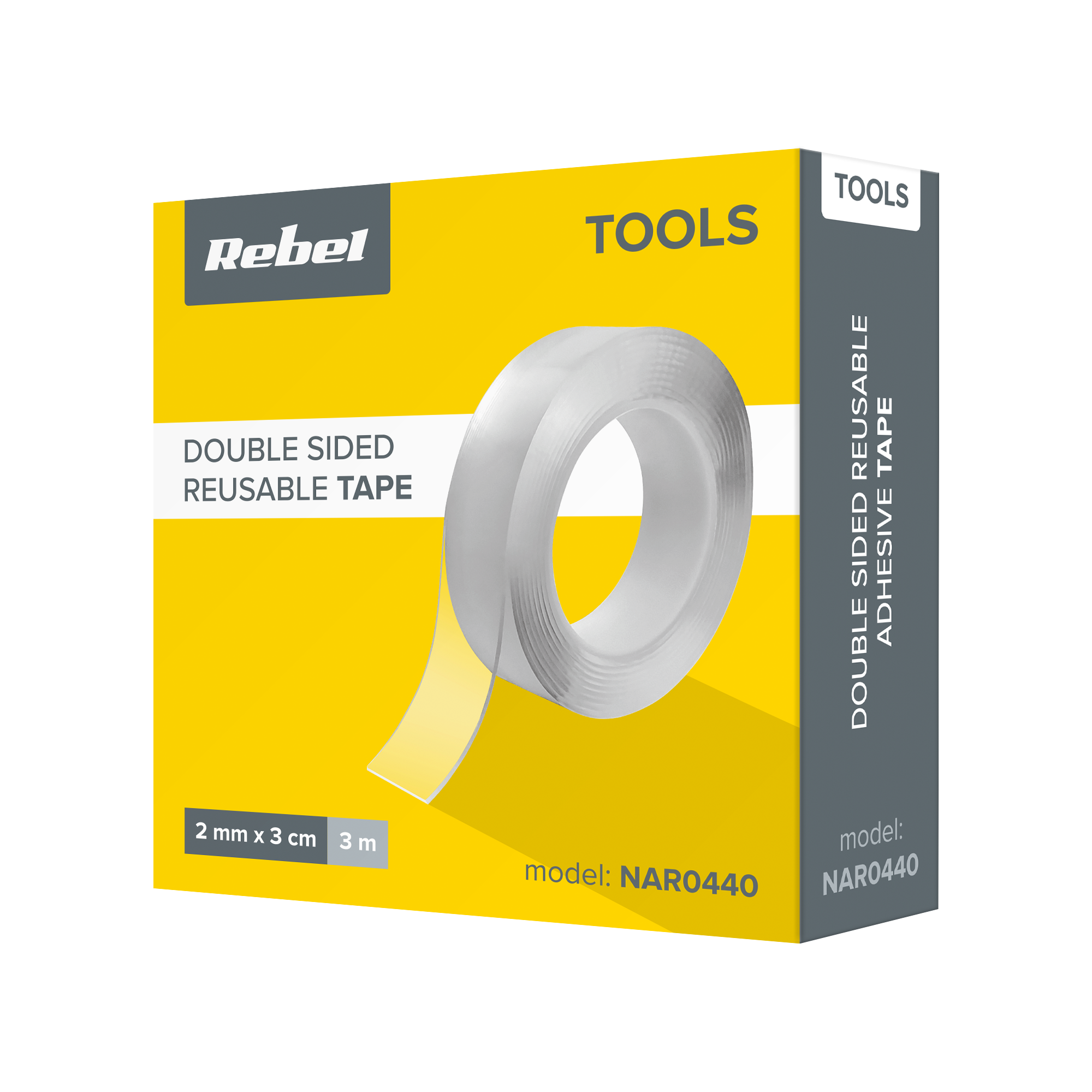 Dwustronna taśma montażowa nano wielokrotnego użytku REBEL (2 mm x 30 mm x 3 m) transparentna