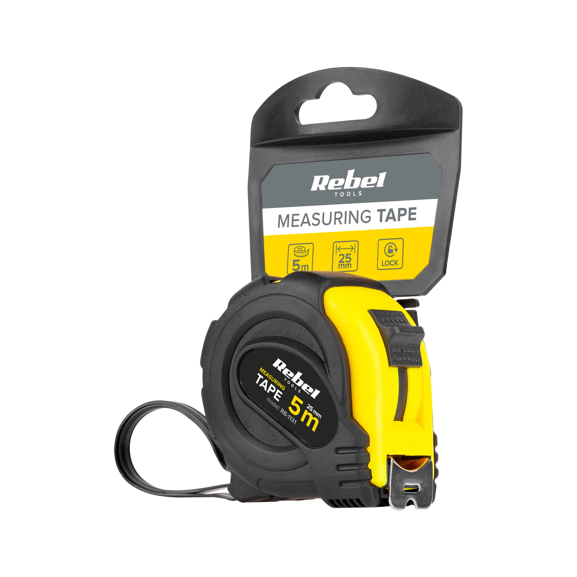 Taśma miernicza Rebel o zasięgu 5 m wykonana została ze stali, co w połączeniu z solidną obudową z tworzywa sztucznego gwarantuje dużą żywotność i odporność na uderzenia i inne uszkodzenia. Zaczep mierniczy oraz przycisk blokady, w połączeniu z dużą szerokością przyrządu (25 mm), ułatwiają dokładny pomiar dużych odległości bez podparcia, dzięki czemu samodzielnie poradzisz sobie z pomiarem niemal w każdej sytuacji.