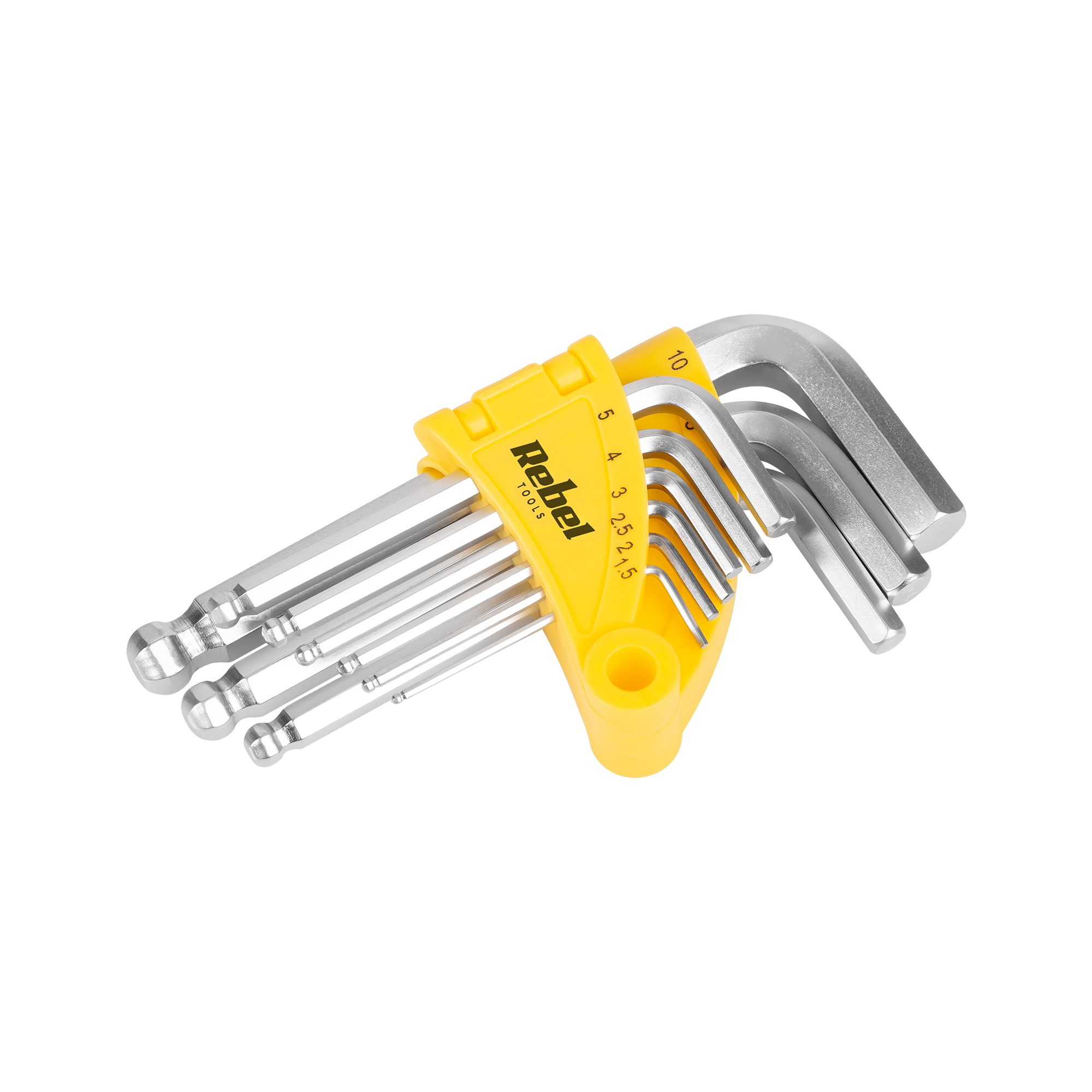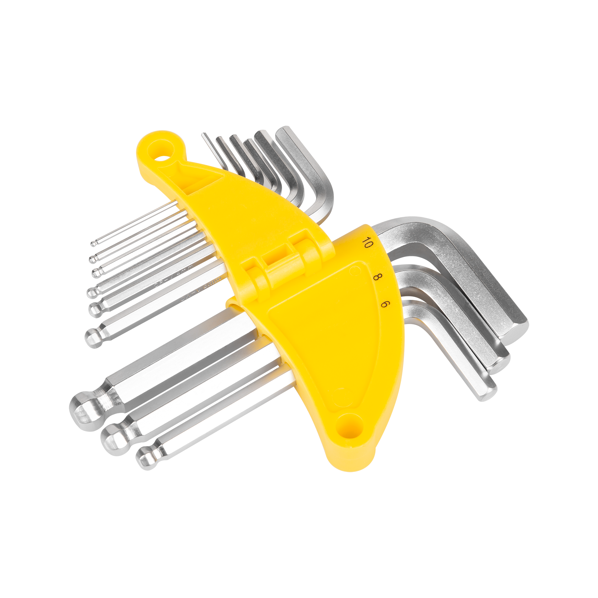 9 kluczy Hex: 1,5/ 2/ 2,5/ 3/ 4/ 5/ 6/ 8/ 10 mm