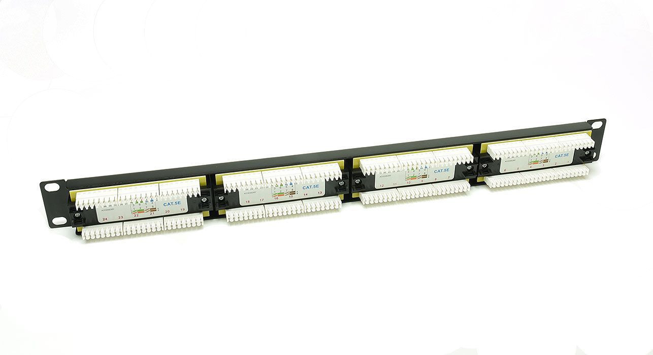Patch panel 19 cali, kat.5e UTP, 24 porty.