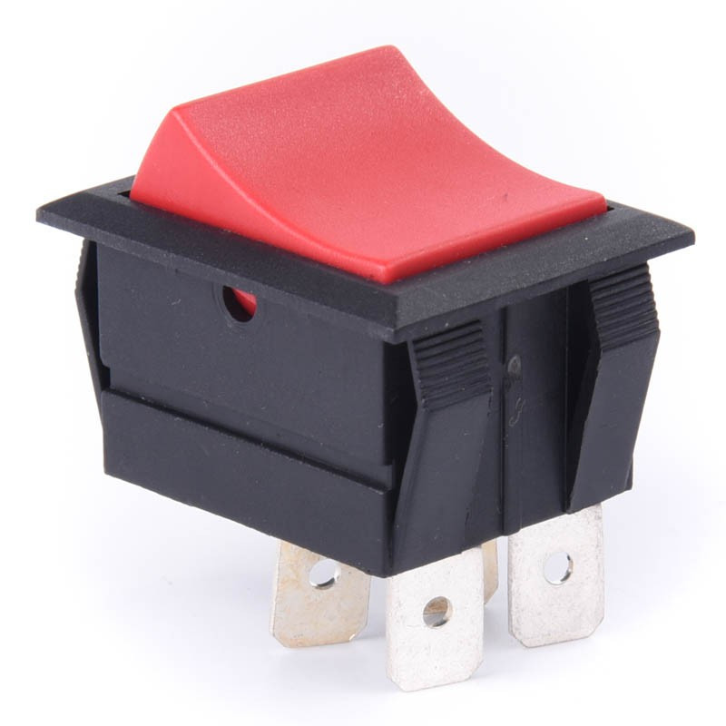Przełącznik bistabilny on/off VITALCO. Montaż na wcisk do obudowy. Typ podłączenia- 4 konektory. Często stosowany jako włącznik do listwy zasilającej.