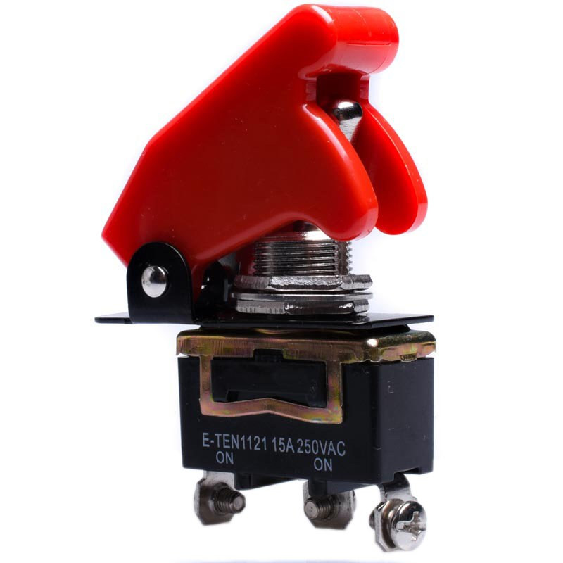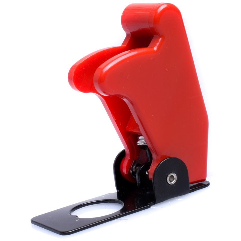 Osłona na przełącznik hebelkowy typu KN. Zabezpiecza dźwignię przełącznika przed przypadkowym uruchomieniem. Sprężyna stabilizuje osłonę w pozycji pionowej.