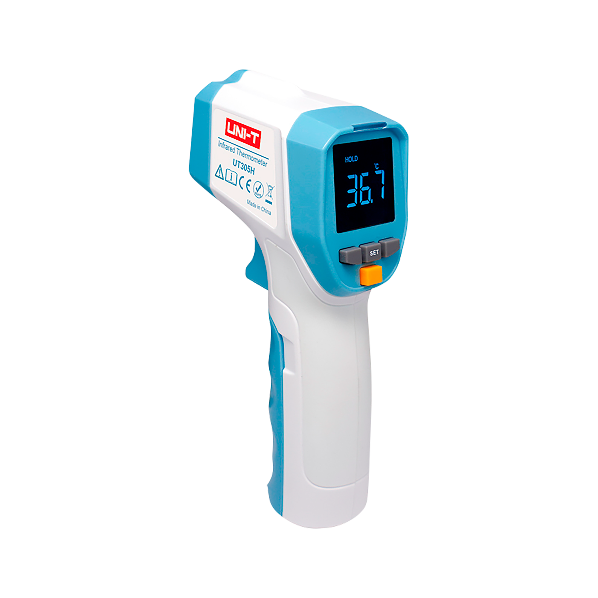 Miernik temperatury UNI-T UT305H, wykorzystując najnowszą technologię umożliwia dokonanie pomiarów temperatury w zakresie 32°C-42,9°. Duża dokładność urządzenia pozwala na szybką i precyzyjną kontrolę temperatury ciała, jak też innych elementów otoczenia, np. przedmiotów, jedzenia, płynów itp.