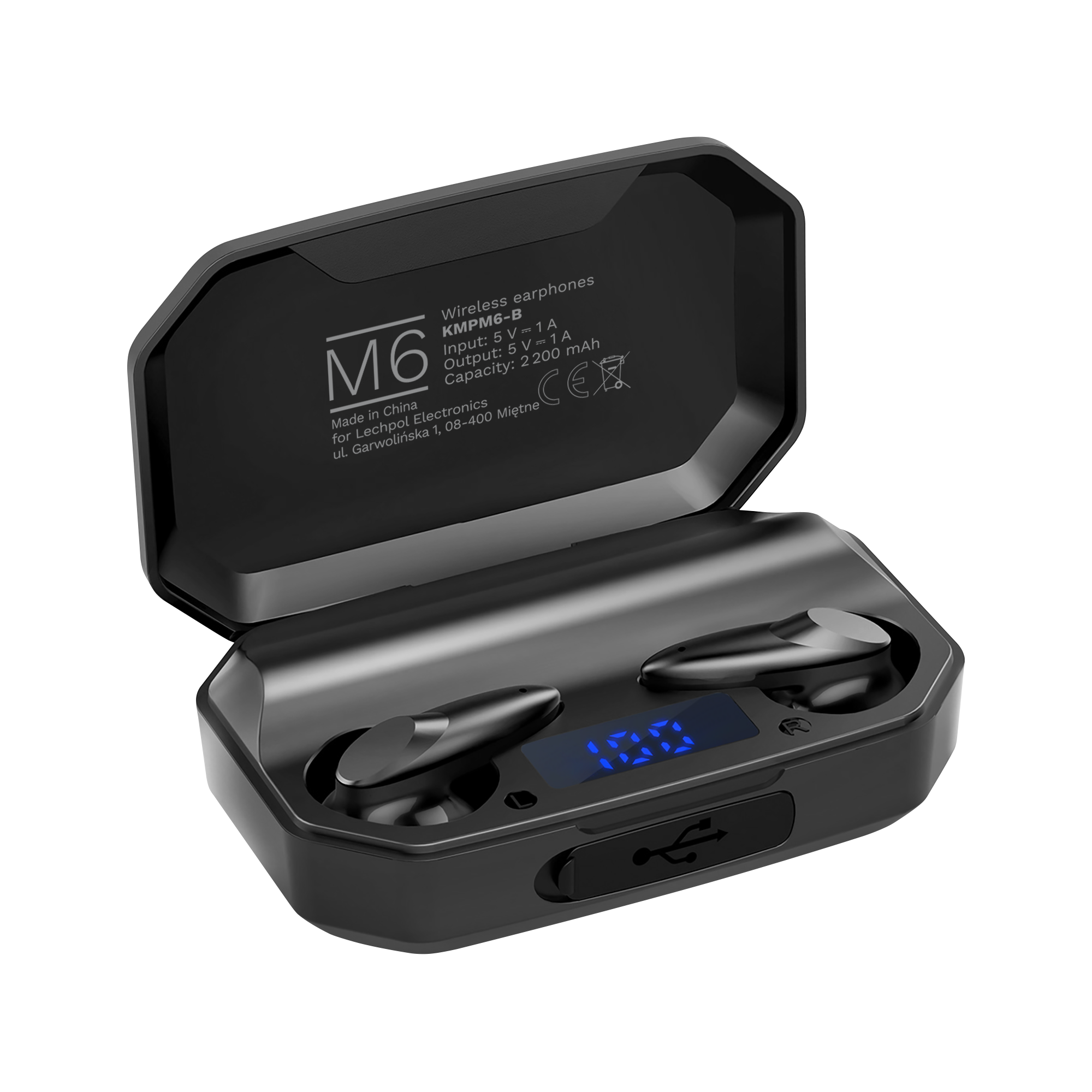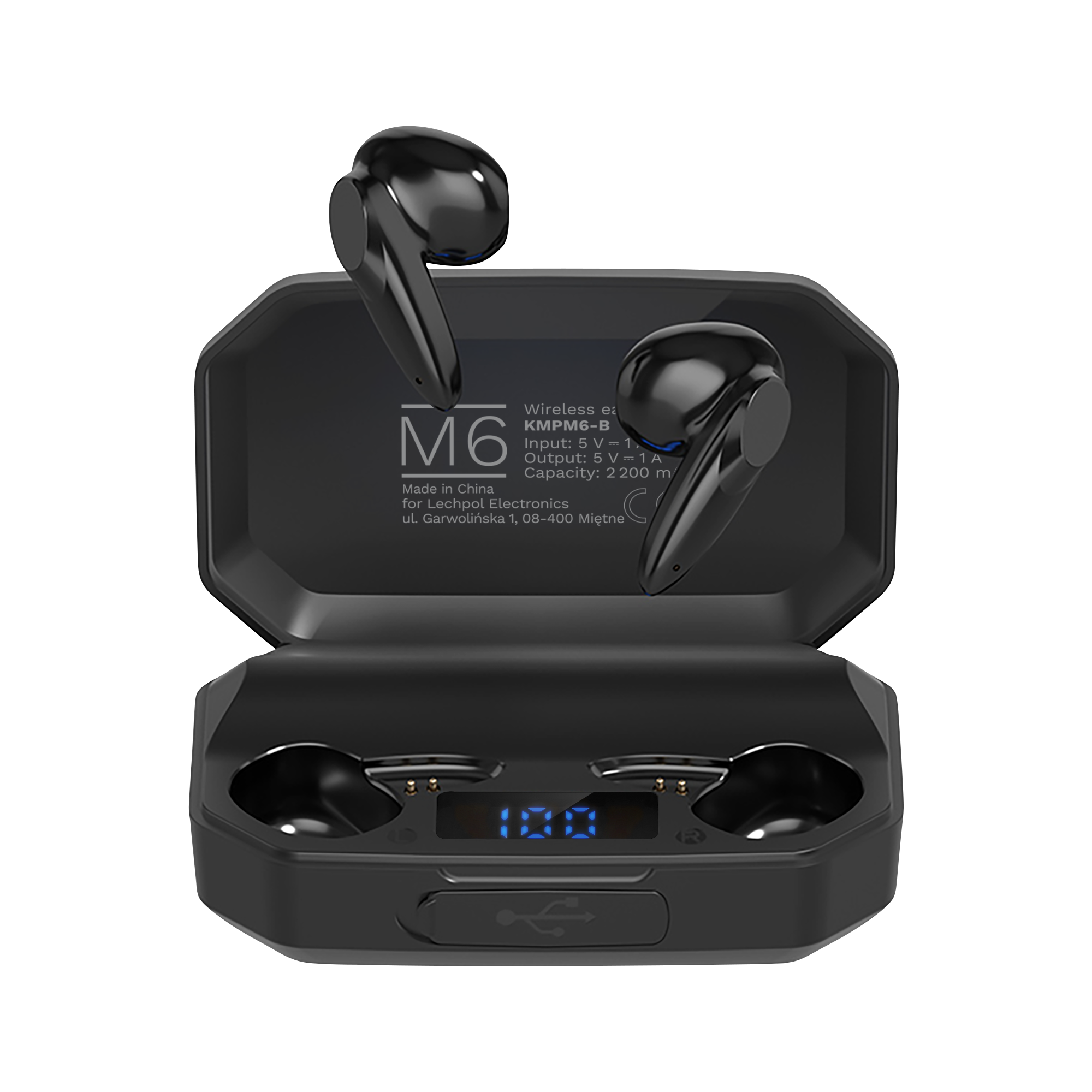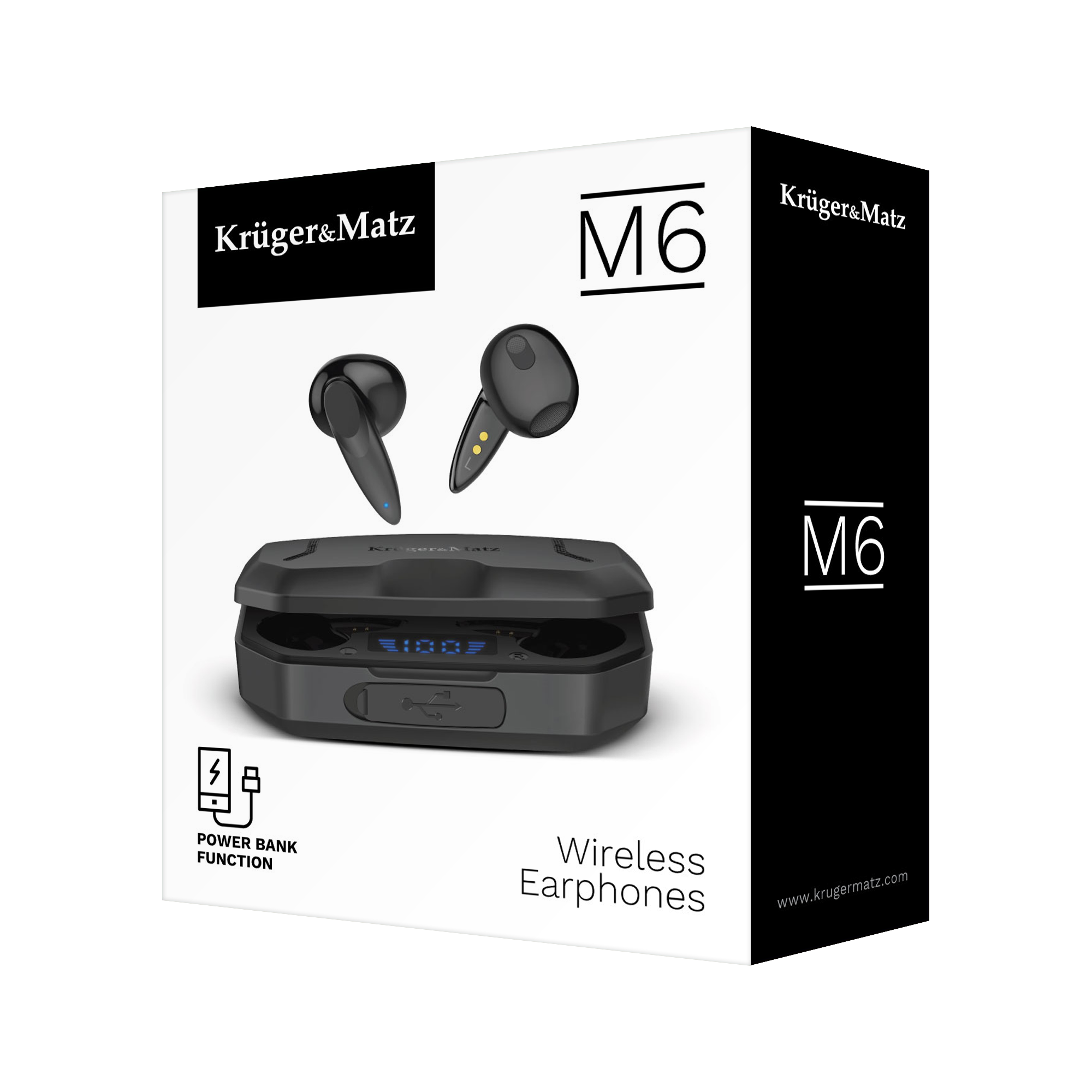 Bezprzewodowe słuchawki douszne z power bankiem Kruger&Matz M6 - kolor czarny