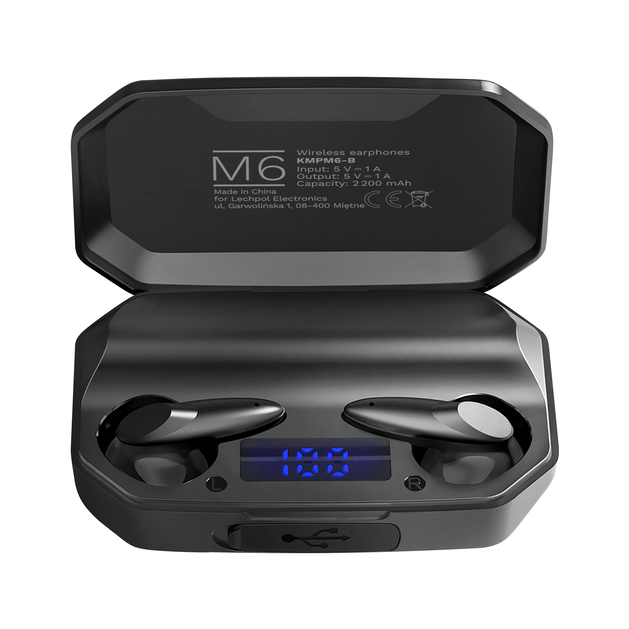 Etui, które otrzymujesz ze słuchawkami bezprzewodowymi M6, nie tylko umożliwia ich ładowanie i bezpieczne przechowywanie. Dzięki wbudowanej baterii 2200 mAh staje się ono power bankiem, który pozwoli Ci doładować inne urządzenia.