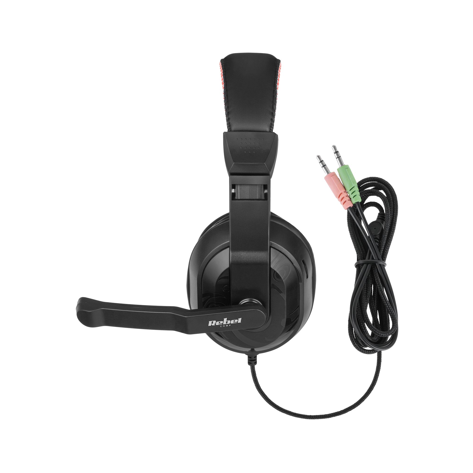 Słuchawki przewodowe z mikrofonem Rebel GH-10 to nie tylko doskonały dźwięk, ale również nowoczesny design i komfort. Wygodne nauszniki i pałąk pokryte miękką ekoskórą gwarantują wysoki komfort nawet w czasie długich maratonów gamingowych. Dodatkowo połączenie czerni z elementami czerwieni dodaje im gamingowego pazura i przyciąga spojrzenia.