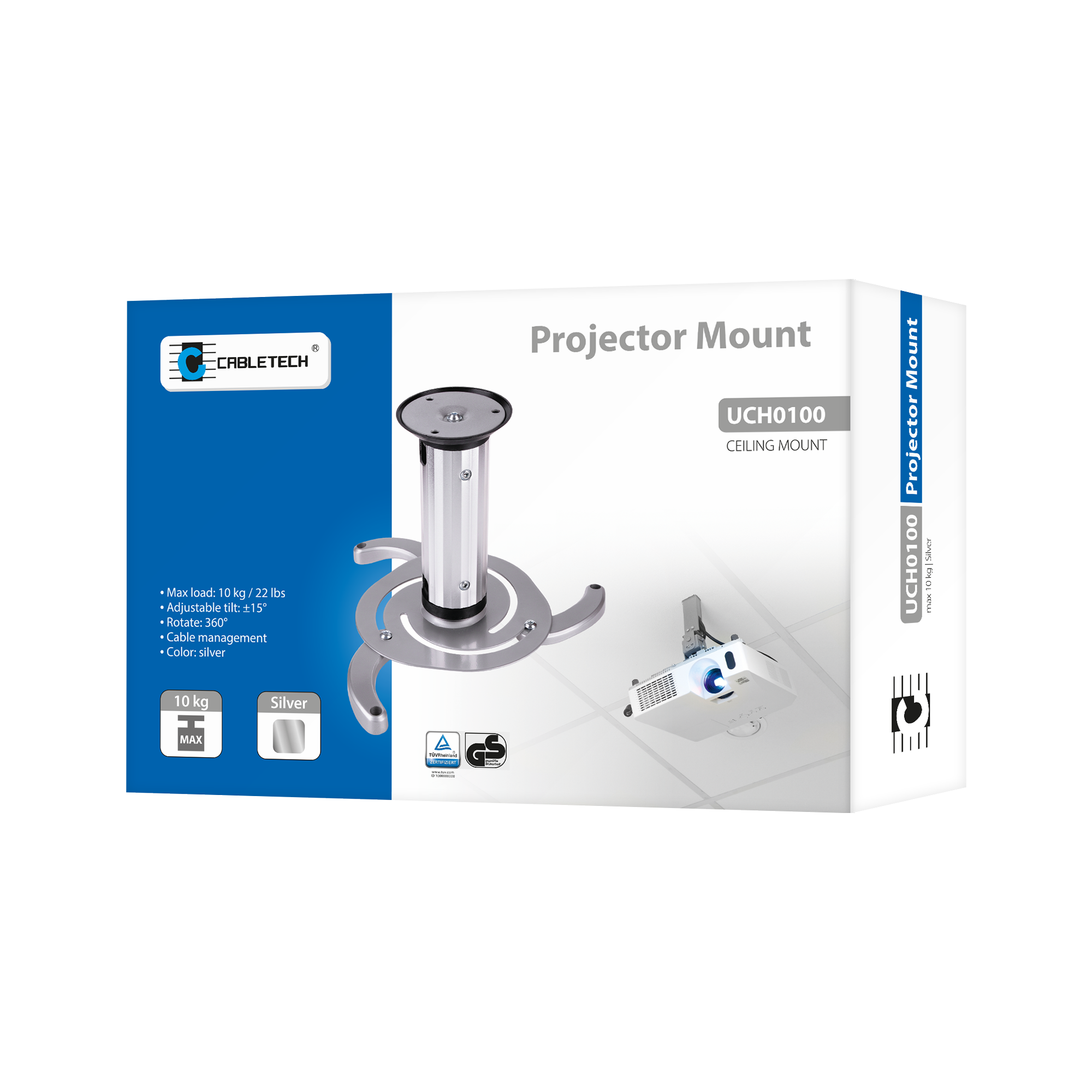 Szukasz uchwytu sufitowego, który umożliwi idealne wyświetlanie obrazu z Twojego projektora? Uchwyt Cabletech łączy wyjątkową elastyczność z solidnością, zapewniając doskonałą jakość obrazu w każdej sytuacji. Dzięki regulacji w pionie w zakresie od +15° do -15° oraz pełnemu obrotowi 360°, precyzyjnie dopasujesz położenie projektora do swoich potrzeb, co jest szczególnie przydatne podczas prezentacji czy pracy zespołowej.