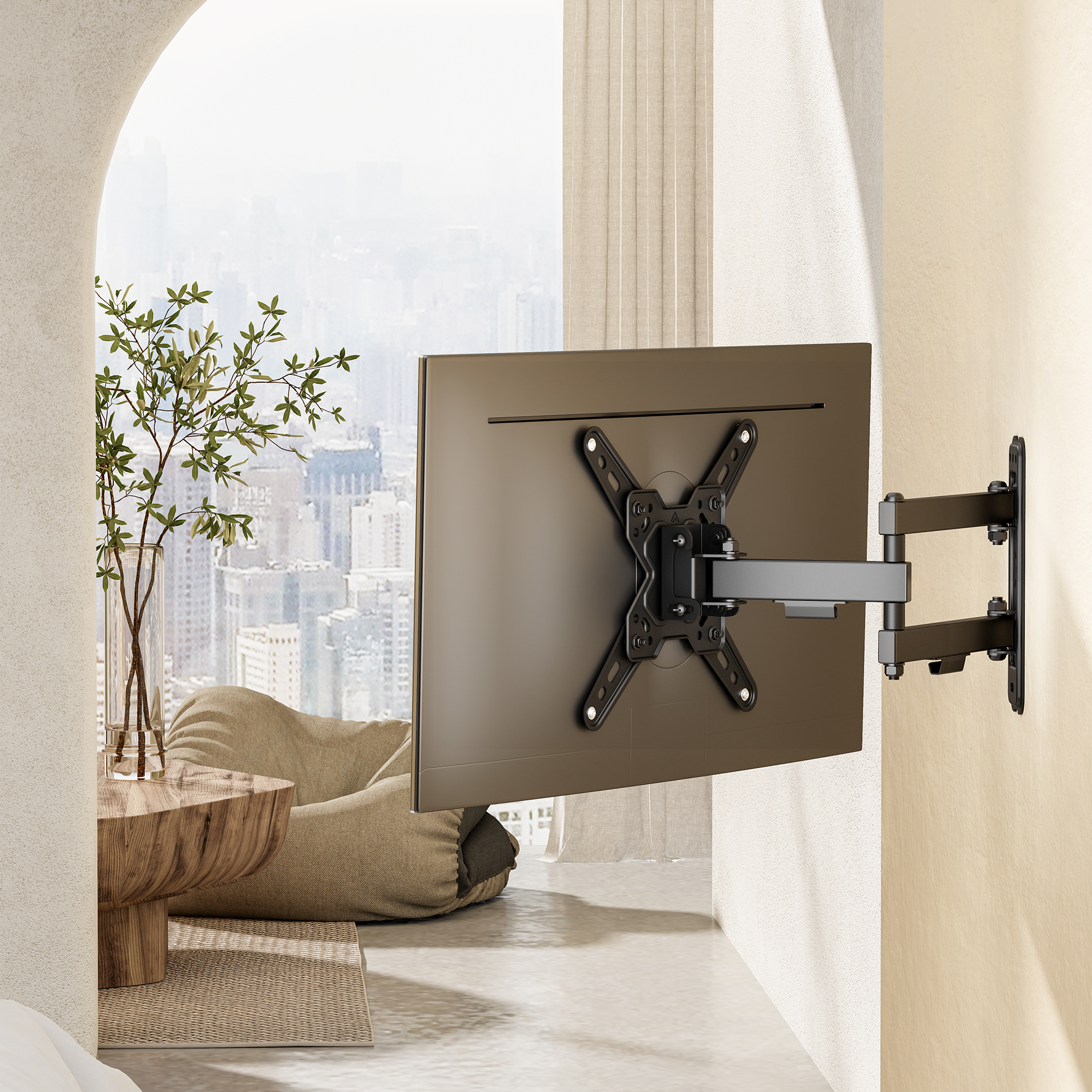 Uchwyt obsługuje standardy VESA, co gwarantuje wszechstronność i kompatybilność z szeroką gamą telewizorów, w tym z zakrzywionymi ekranami. Regulowana odległość od ściany w zakresie od 66 do 370 mm oraz wbudowany system zarządzania kablami pomagają utrzymać estetykę i porządek w Twoim wnętrzu.
