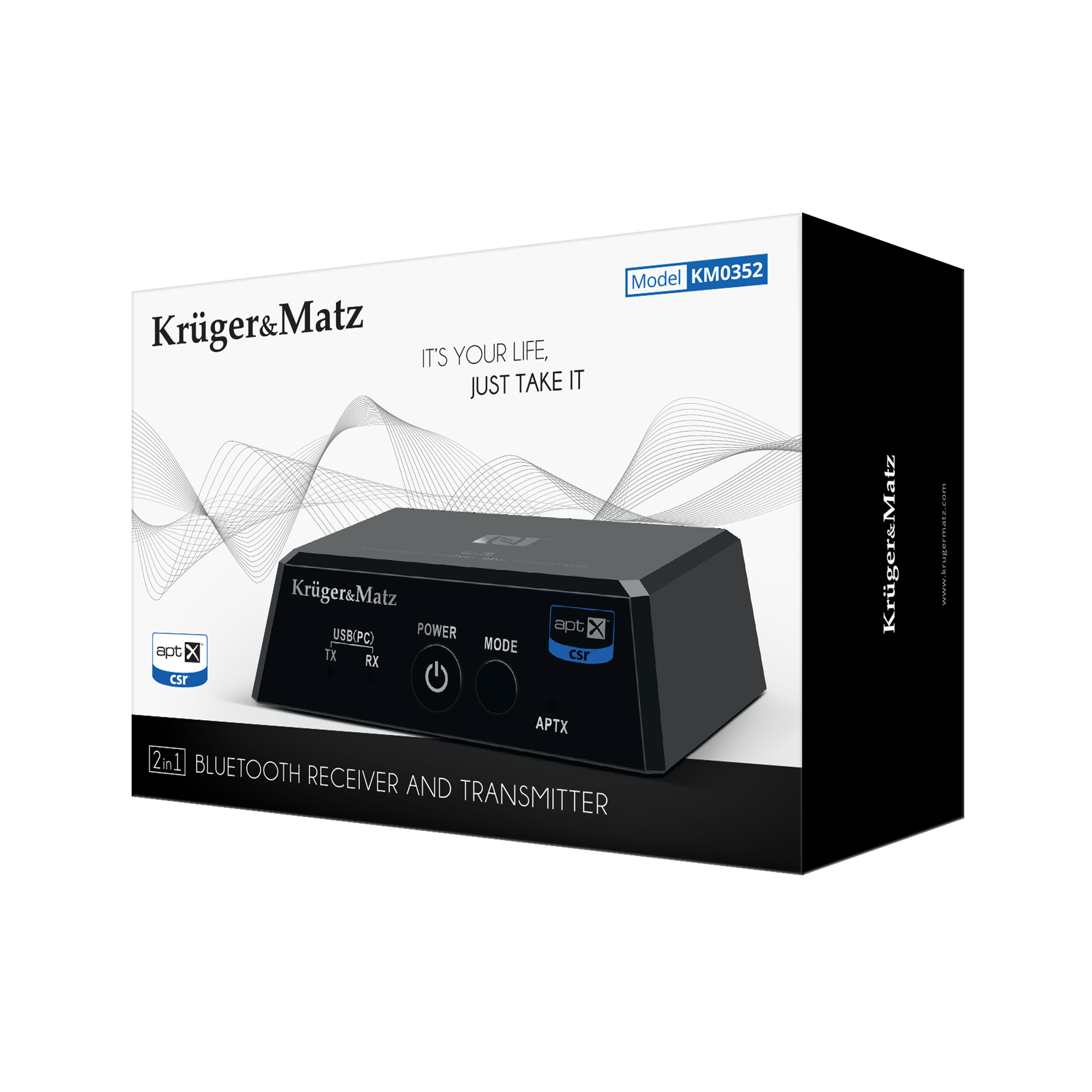 Myślisz, że korzystanie z łączności bezprzewodowej wiąże się ze słabszą jakością dźwięku? Nic podobnego! Dzięki obsłudze kodeka apt-X transmiter Kruger&Matz zapewnia doskonałe brzmienie. Co więcej, w urządzeniu zastosowano technologię Bluetooth 5.0, która nie tylko gwarantuje większy zasięg oraz stabilność połączenia, ale także mniejsze zużycie energii.