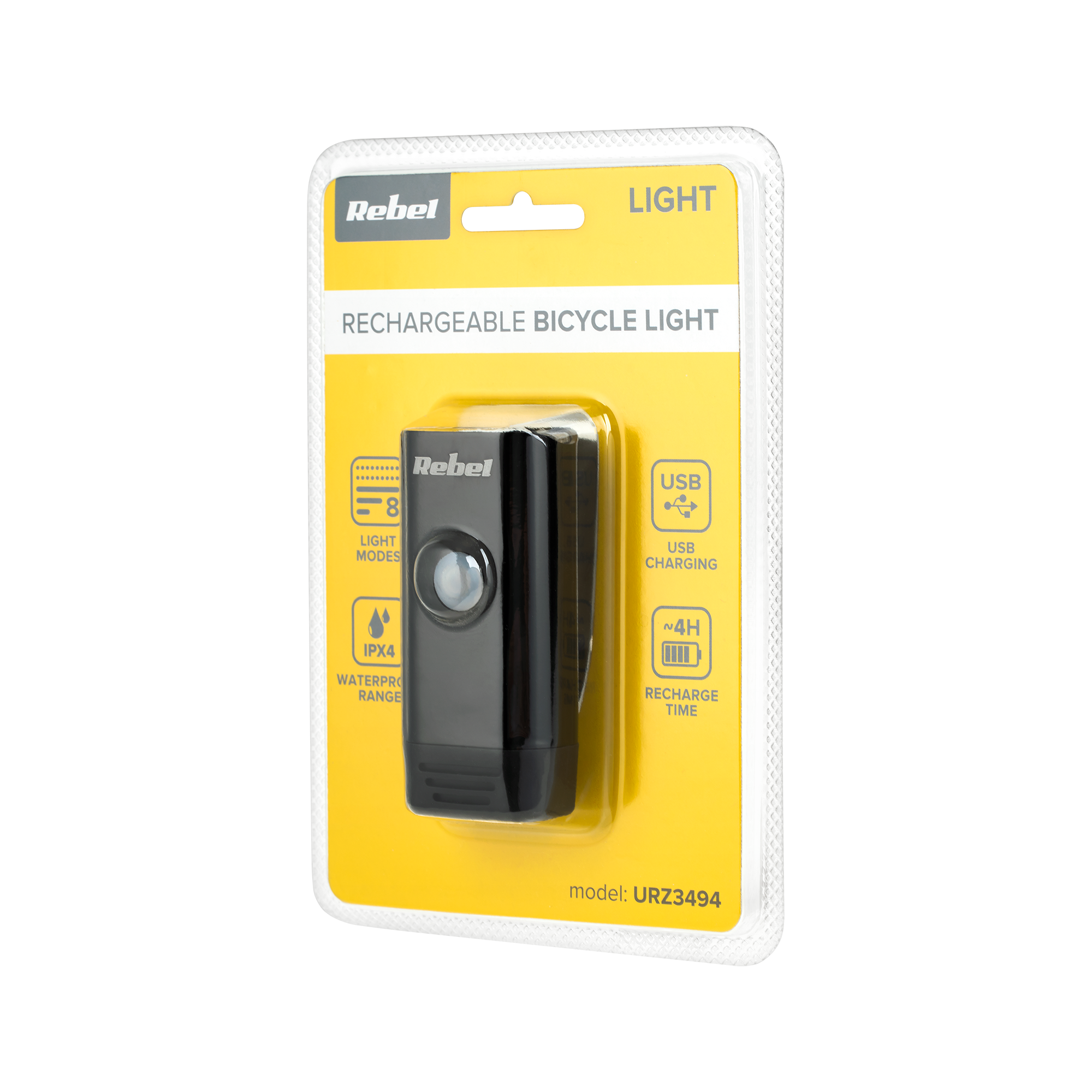 Oświetlenie rowerowe powinno charakteryzować się niezawodnością. Tak jest też w przypadku lampki do roweru Rebel URZ3494! Solidna obudowa jest odporna na uszkodzenia, a dzięki normie IPX4, możesz korzystać ze światła także w czasie lekkiego deszczu.