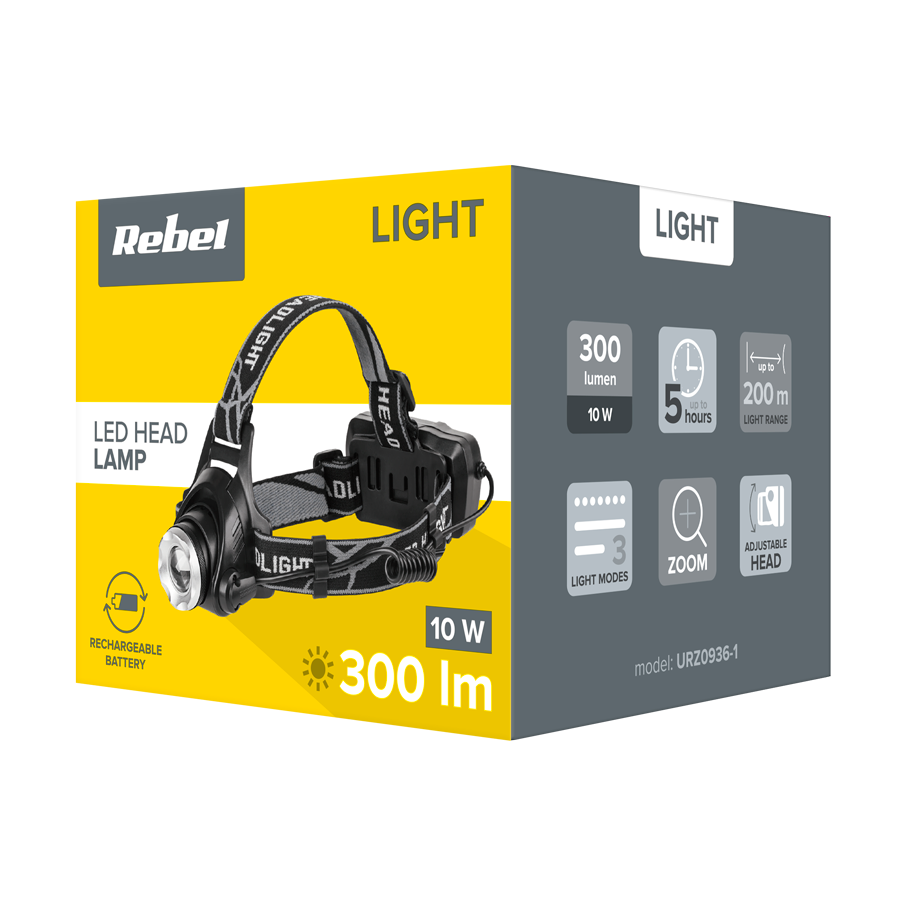Akumulatorowa latarka czołowa 10W zoom aluminium Rebel