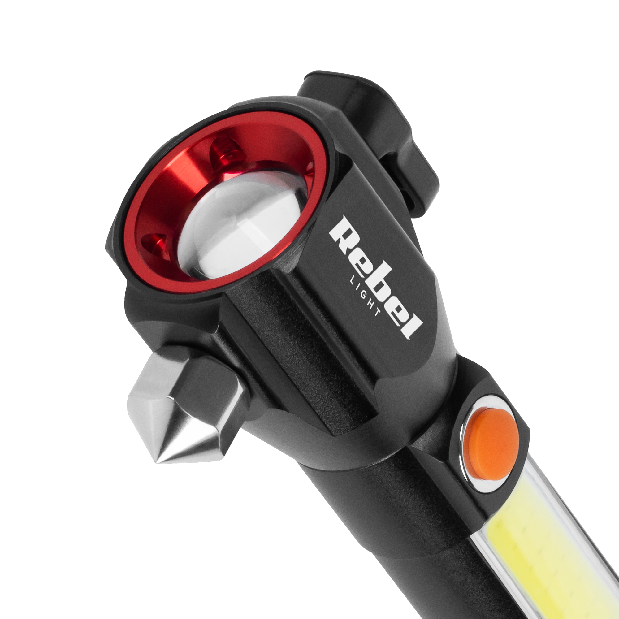 Akumulatorowa latarka wielofunkcyjna Rebel (zoom, nożyk, młotek do szyby).