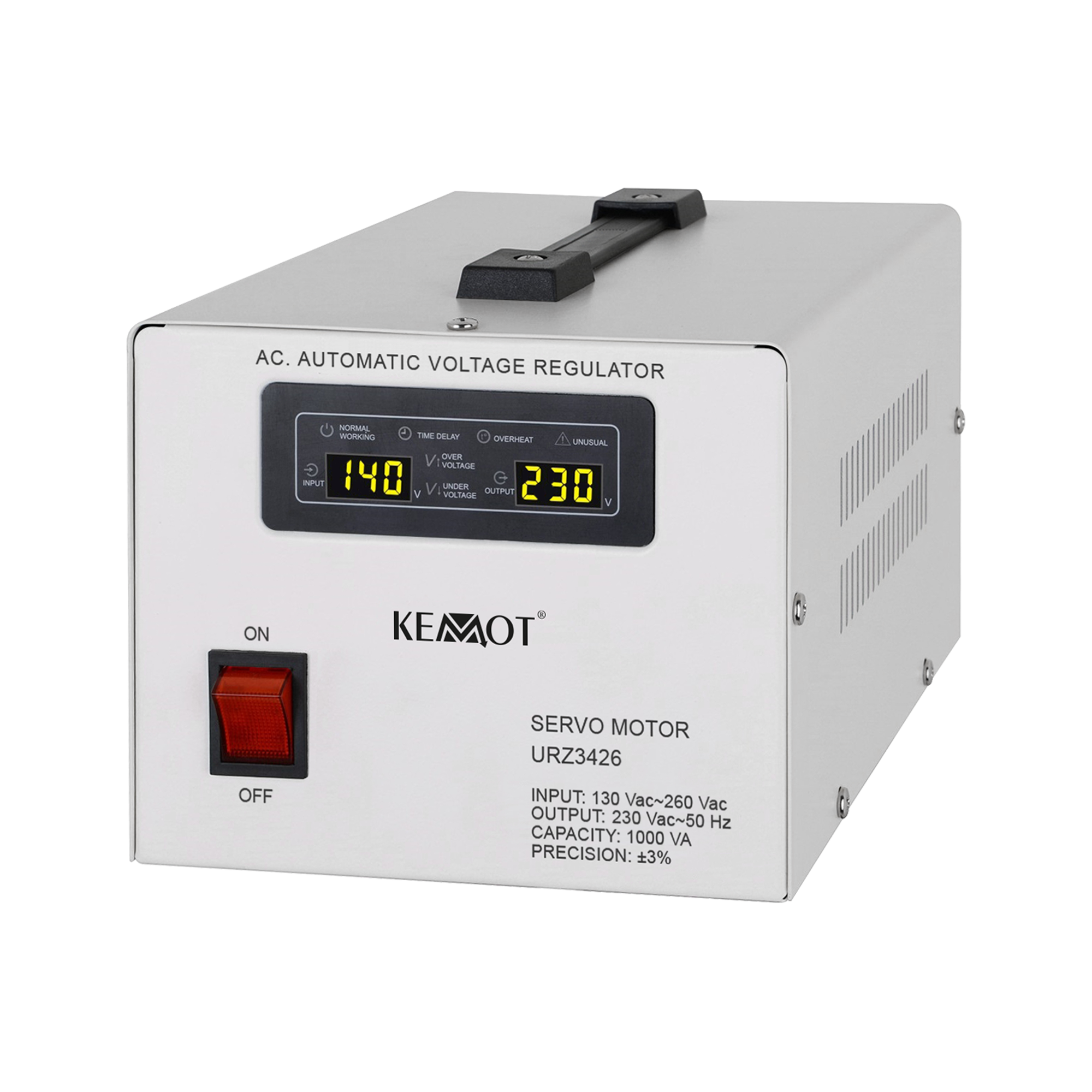 Stabilizator napięcia KEMOT to urządzenie, którego zadaniem jest utrzymanie na wyjściu zadanego napięcia 230 V. Zadaniem jego jest podniesienie za niskiego lub obniżenie zbyt wysokiego napięcia wejściowe w taki sposób, by napięcie wyjściowe znajdowało się w dozwolonym zakresie oraz nie posiadało niebezpiecznych dla podłączonych urządzeń jakichkolwiek skoków energii. Konstrukcja stabilizatora oparta jest na transformatorze toroidalnym, co zapewnia stabilną pracę urządzenia.