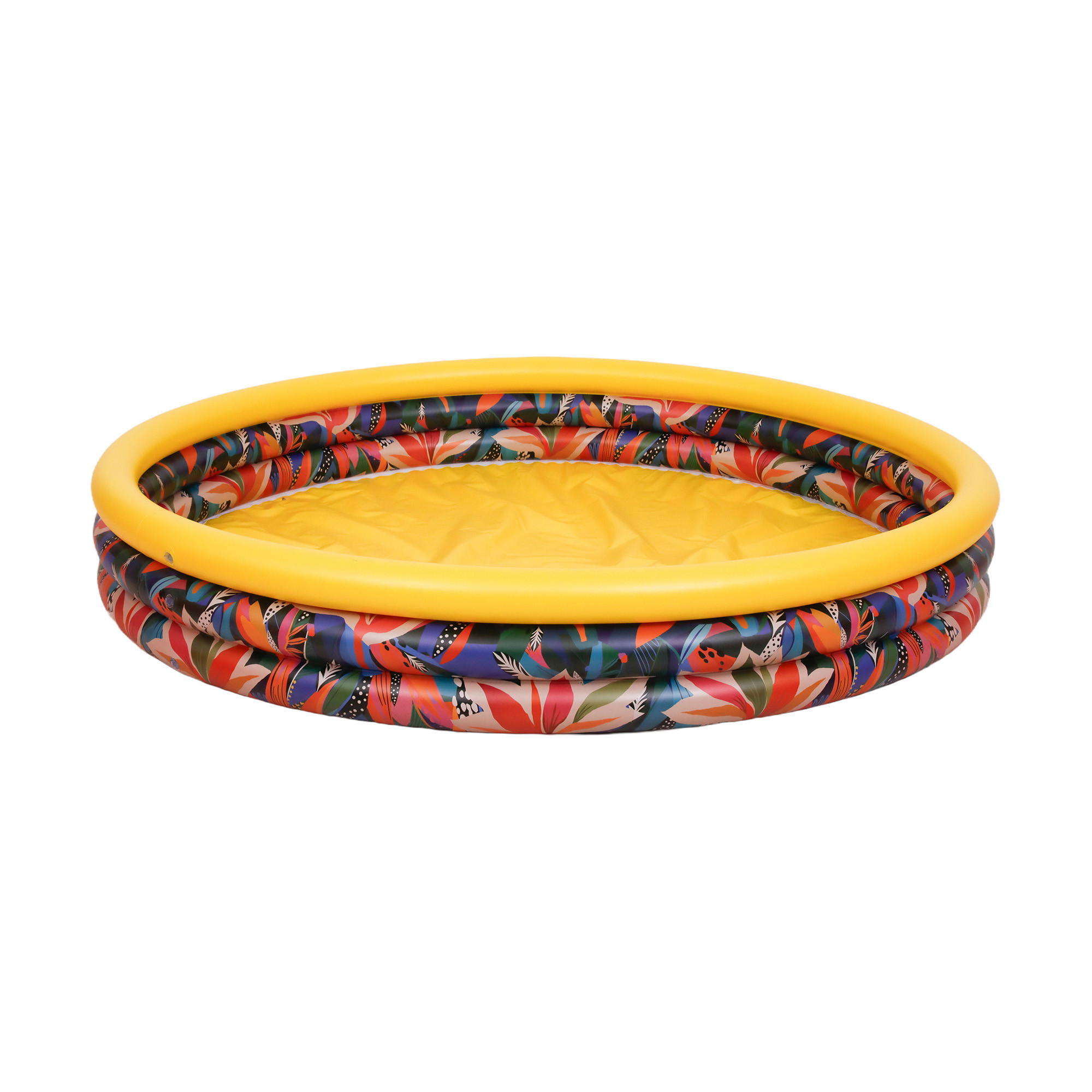 Słoneczny, żółty kolor i kolorowe motywy kwiatowe sprawiają, że basen od razu przyciąga uwagę dzieci. Wygląda radośnie i letnio, zachęcając do zabawy już od pierwszego spojrzenia. To nie tylko miejsce do pluskania – to strefa dziecięcej radości, w której tworzą się wakacyjne wspomnienia. Idealnie pasuje do każdego ogrodu lub tarasu.