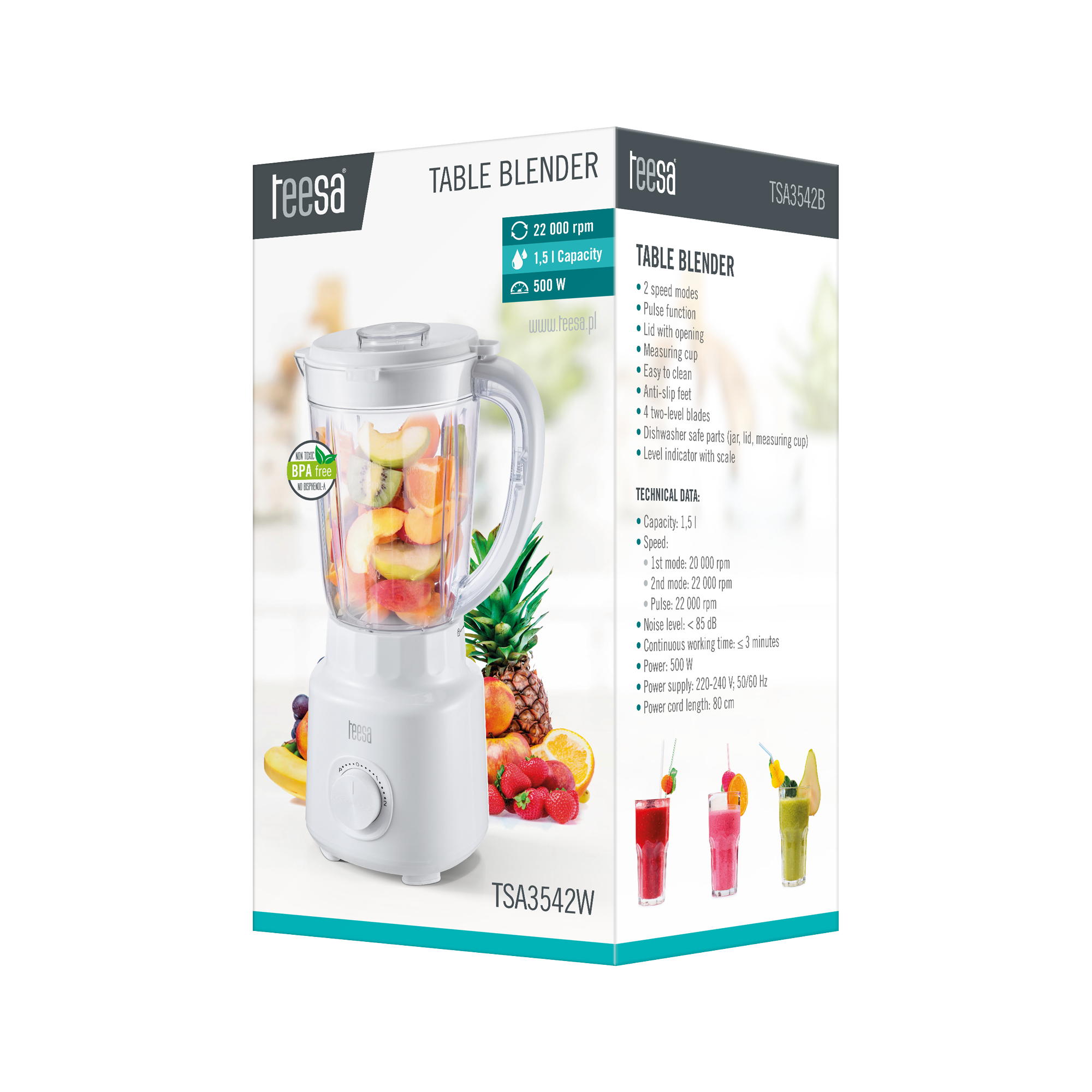Pracujący z mocą 500 W blender posiada dwa tryby prędkości oraz dodatkowy tryb pulsacyjny. Dzięki tym trzem możliwościom masz pewność, że urządzenie poradzi sobie zarówno z miękkimi, jak też twardymi produktami.