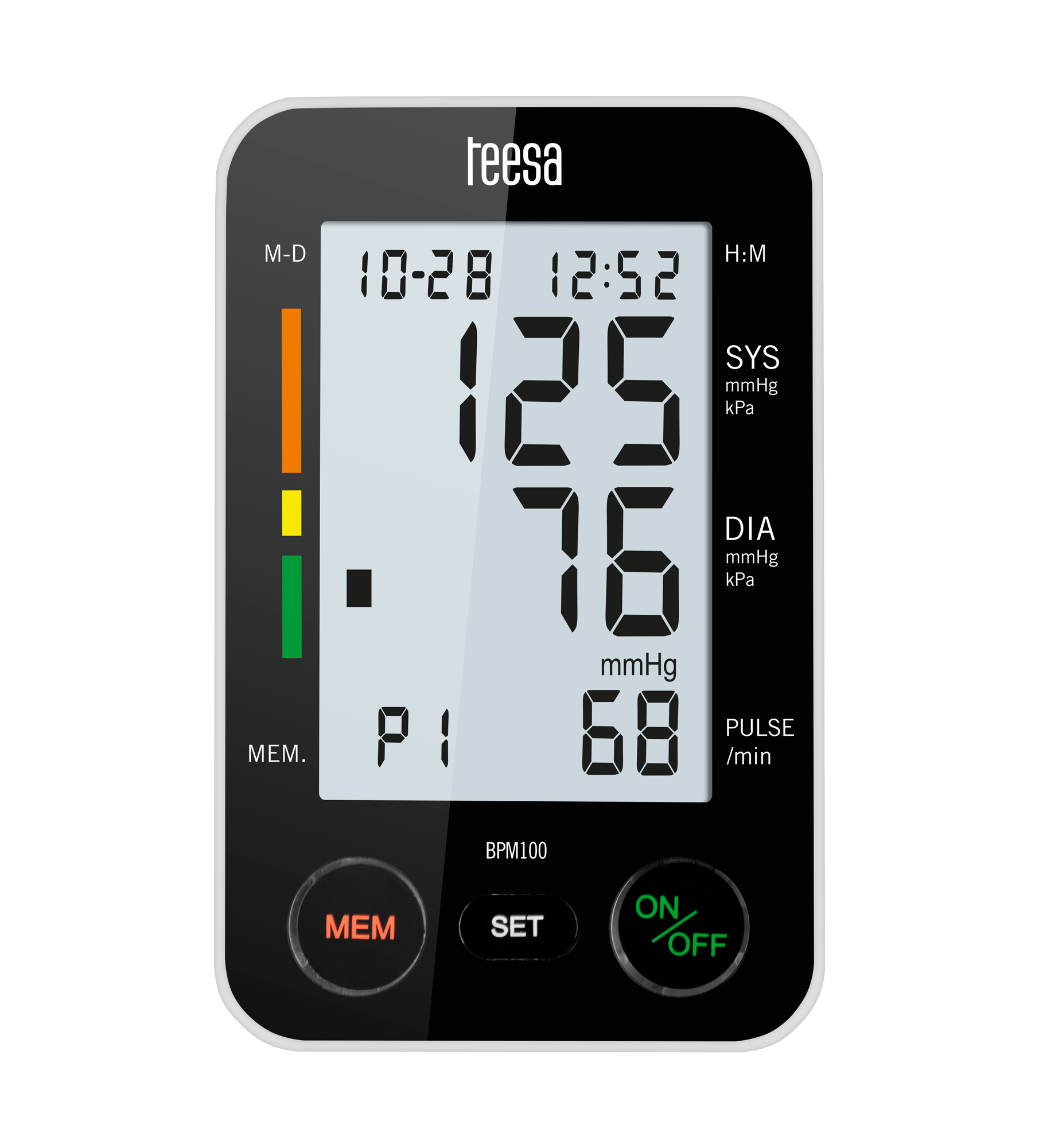 Teesa BPM 100, dzięki swojej dokładności pozwoli Ci poczuć się pewniej, bądź też odpowiednio wcześniej podjąć działania profilaktyczne! Wykonany aparatem pomiar Twojego ciśnienia jest zgodny z normą określoną przez WHO. Dla jeszcze lepszej kontroli wyników urządzenie wyposażone zostało w funkcję zapamiętywania 90 ostatnich pomiarów wykonanych przez dwóch użytkowników.