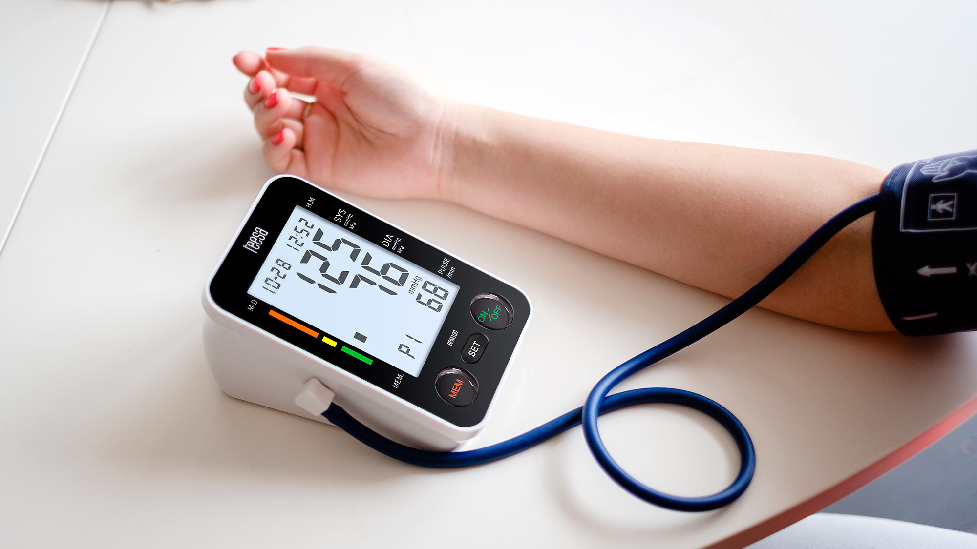 Ciśnieniomierz naramienny Teesa BPM 100 to urządzenie, które powinno obowiązkowo znaleźć się w Twoim domu. Aparat, dzięki prostej obsłudze i wykorzystaniu oscylometrycznej metody pomiaru zmian ciśnienia w mankiecie, umożliwia szybką i samodzielną kontrolę ciśnienia krwi. Co ważne, urządzenie, dzięki swojej funkcjonalności, poinformuje Cię o wszelkich nieprawidłowościach związanych z arytmią serca.