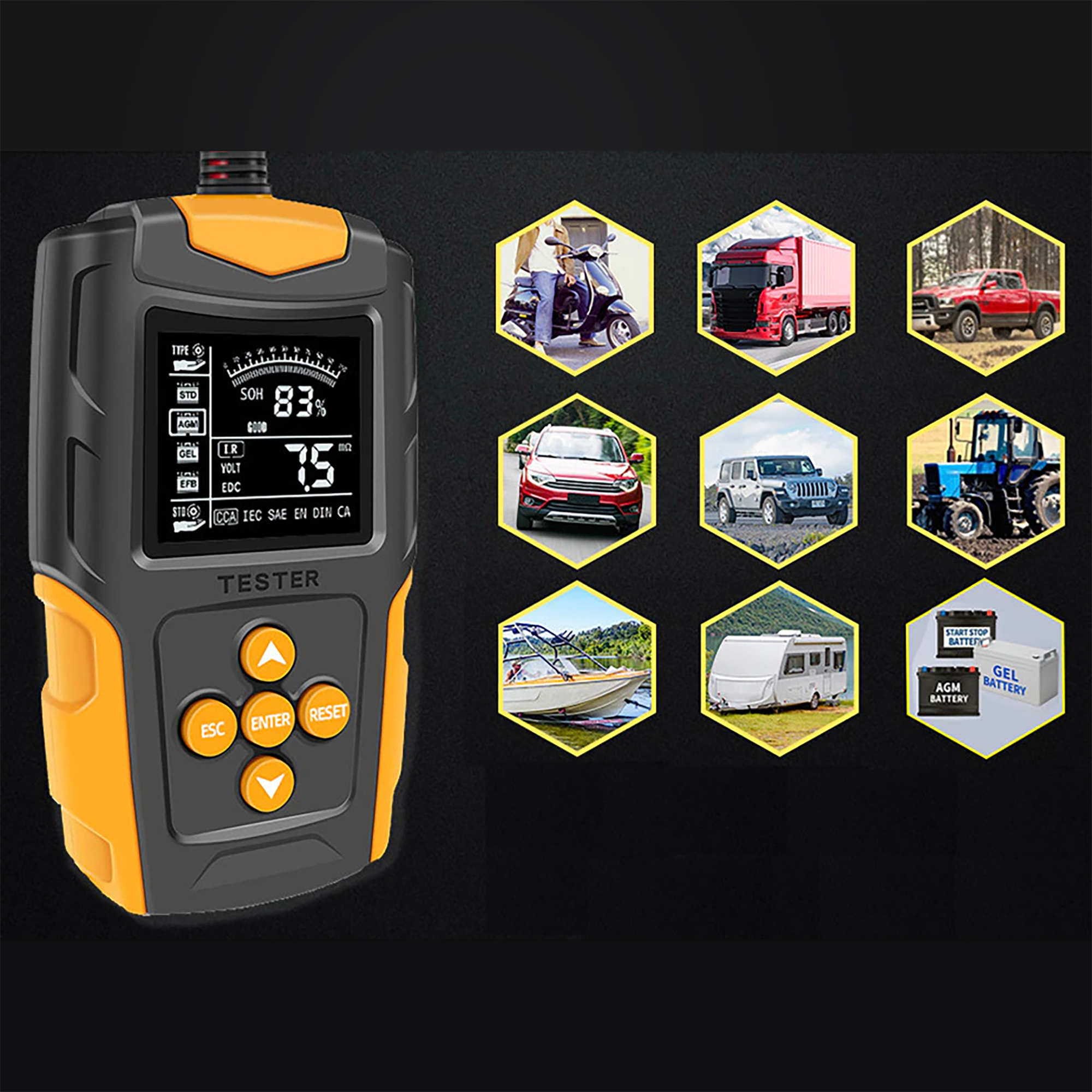 Wynik testu: SOH, SOC, CCA Value, IR, itp.