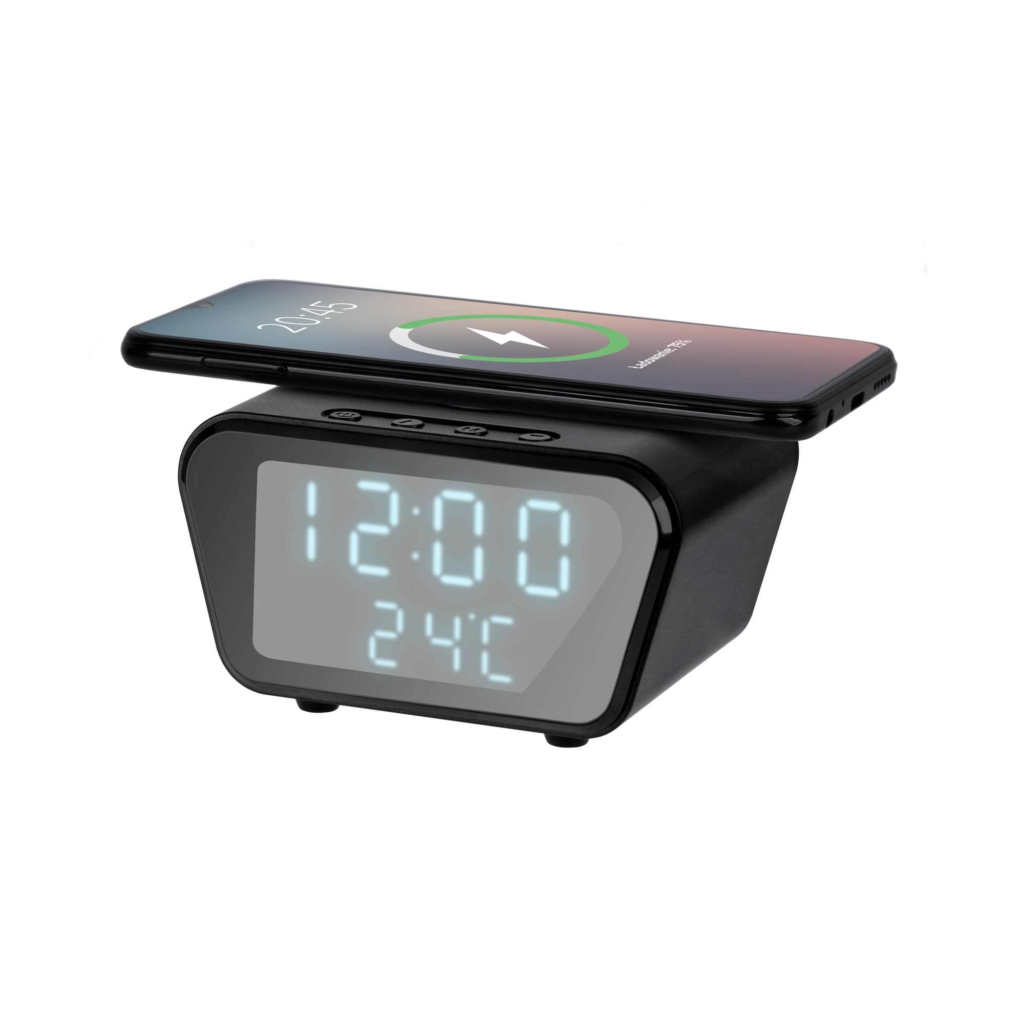 Cyfrowy zegar-budzik z ładowarką indukcyjną (czarny)