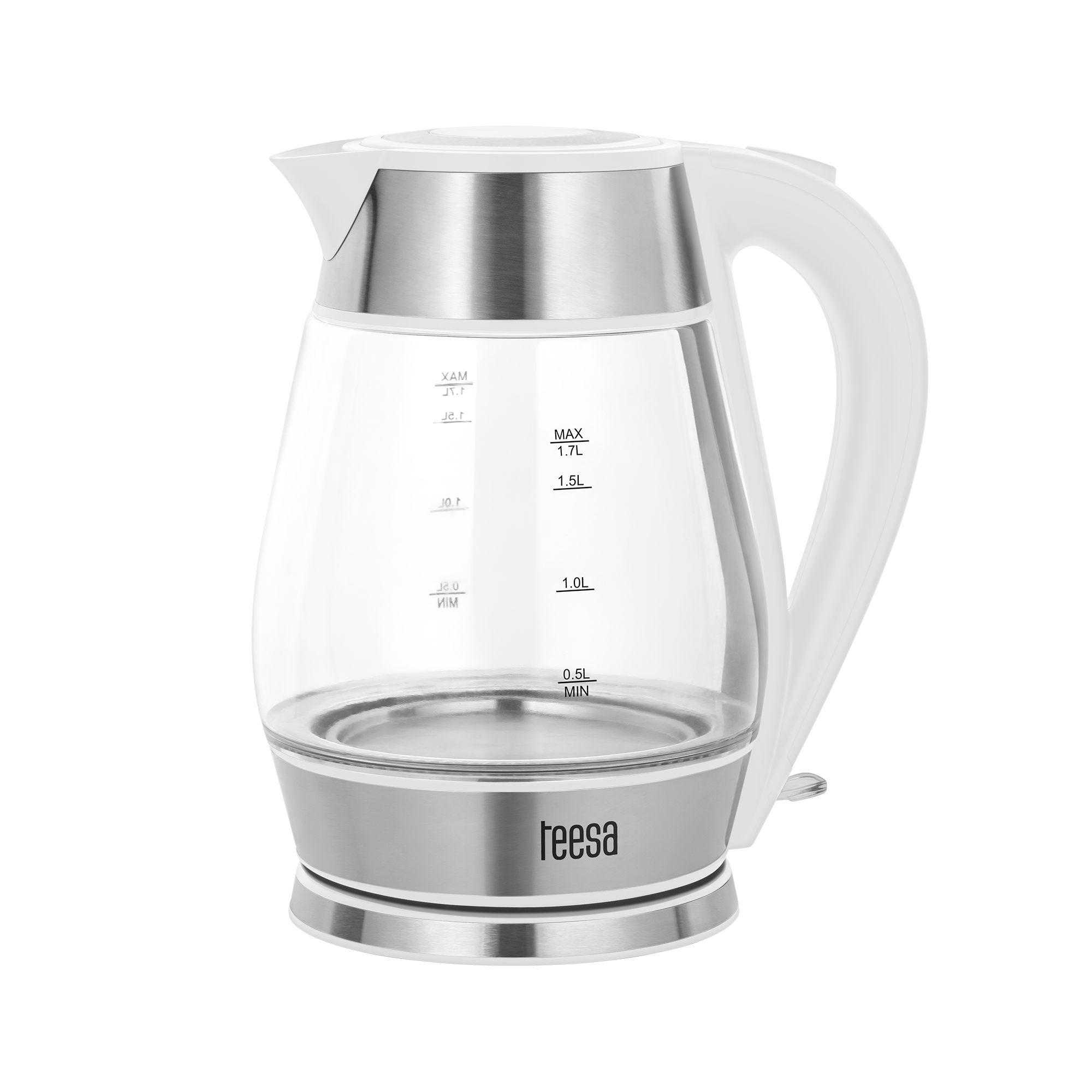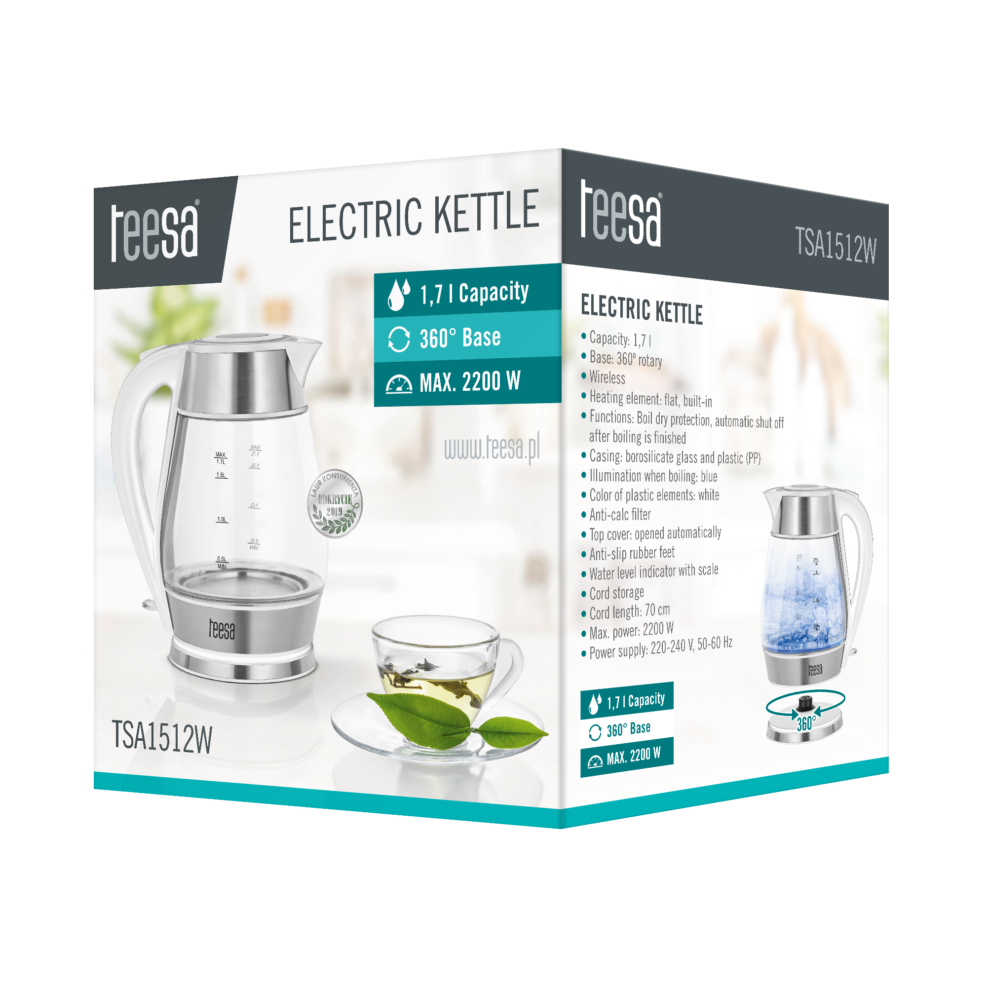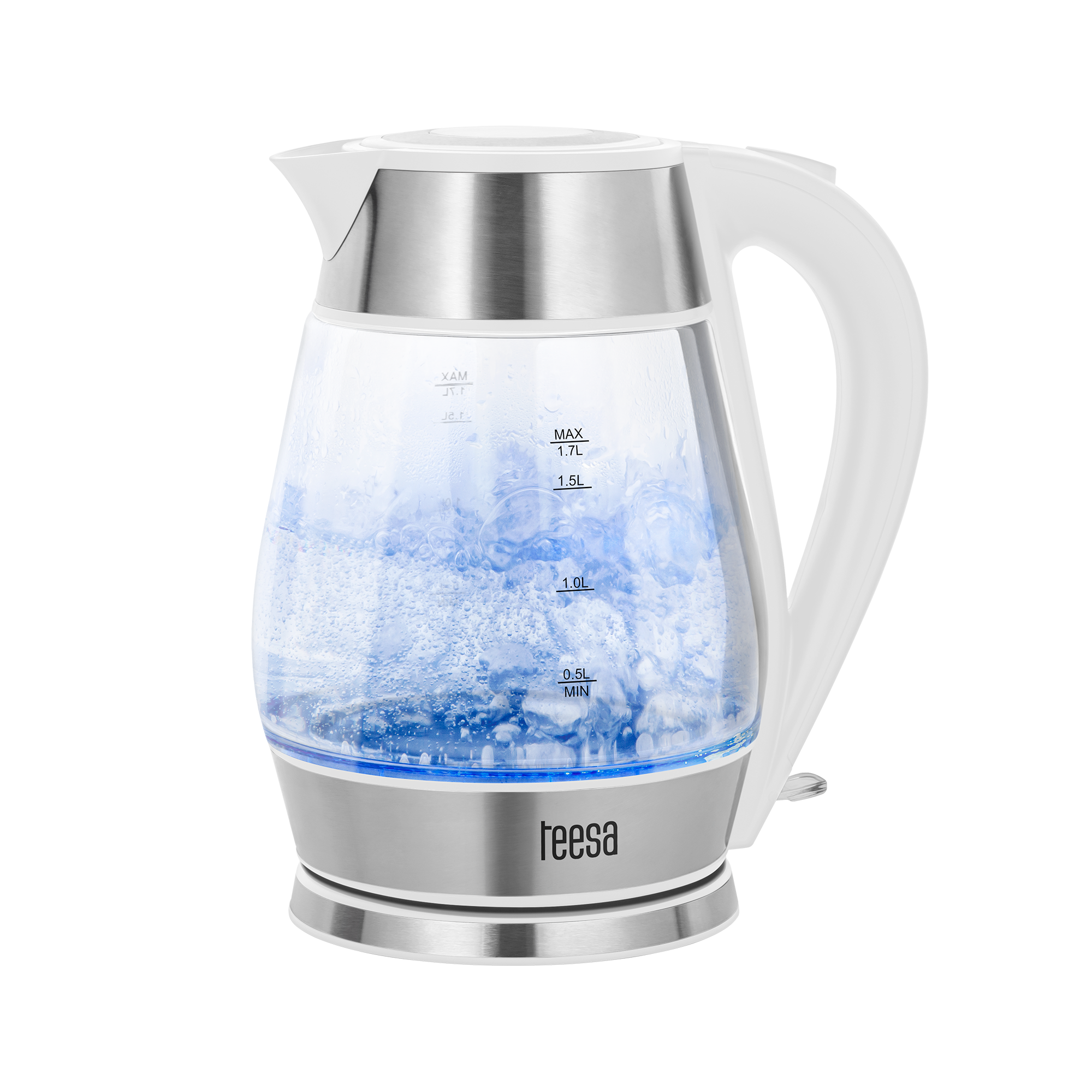 Czajnik elektryczny TEESA, szklany + inox, 2200 W, biały, 1,7 L
