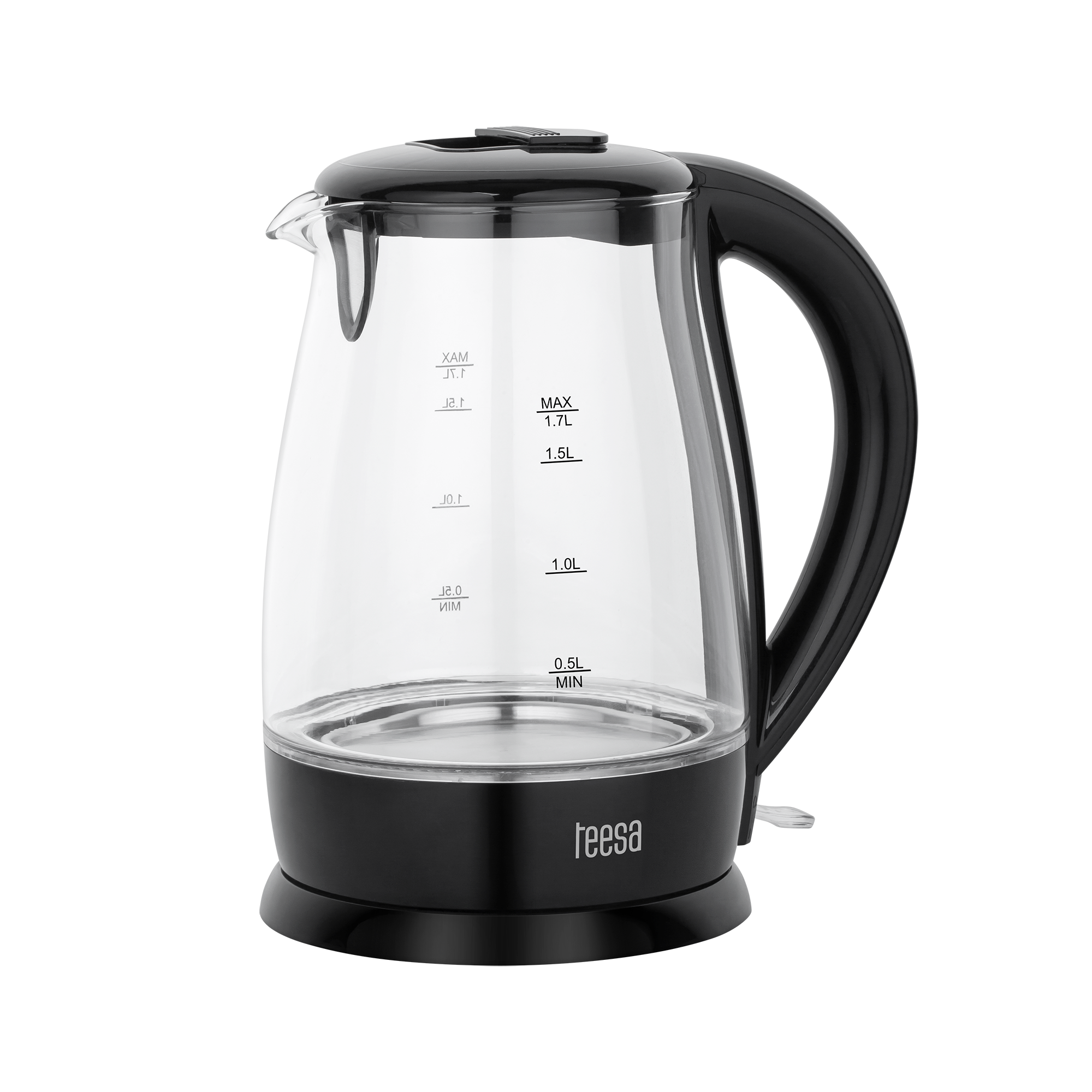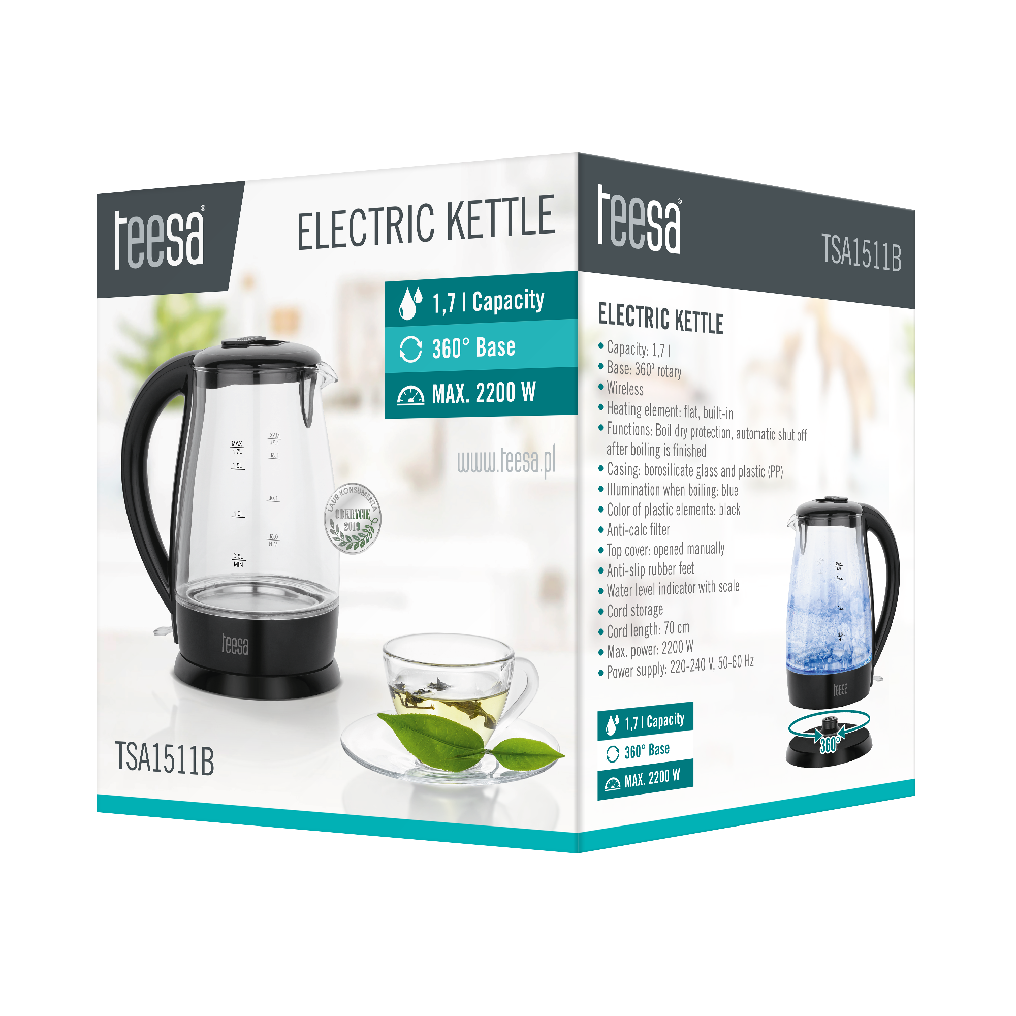 Czajnik elektryczny TEESA, szklany, 2200 W, czarny, 1,7 L