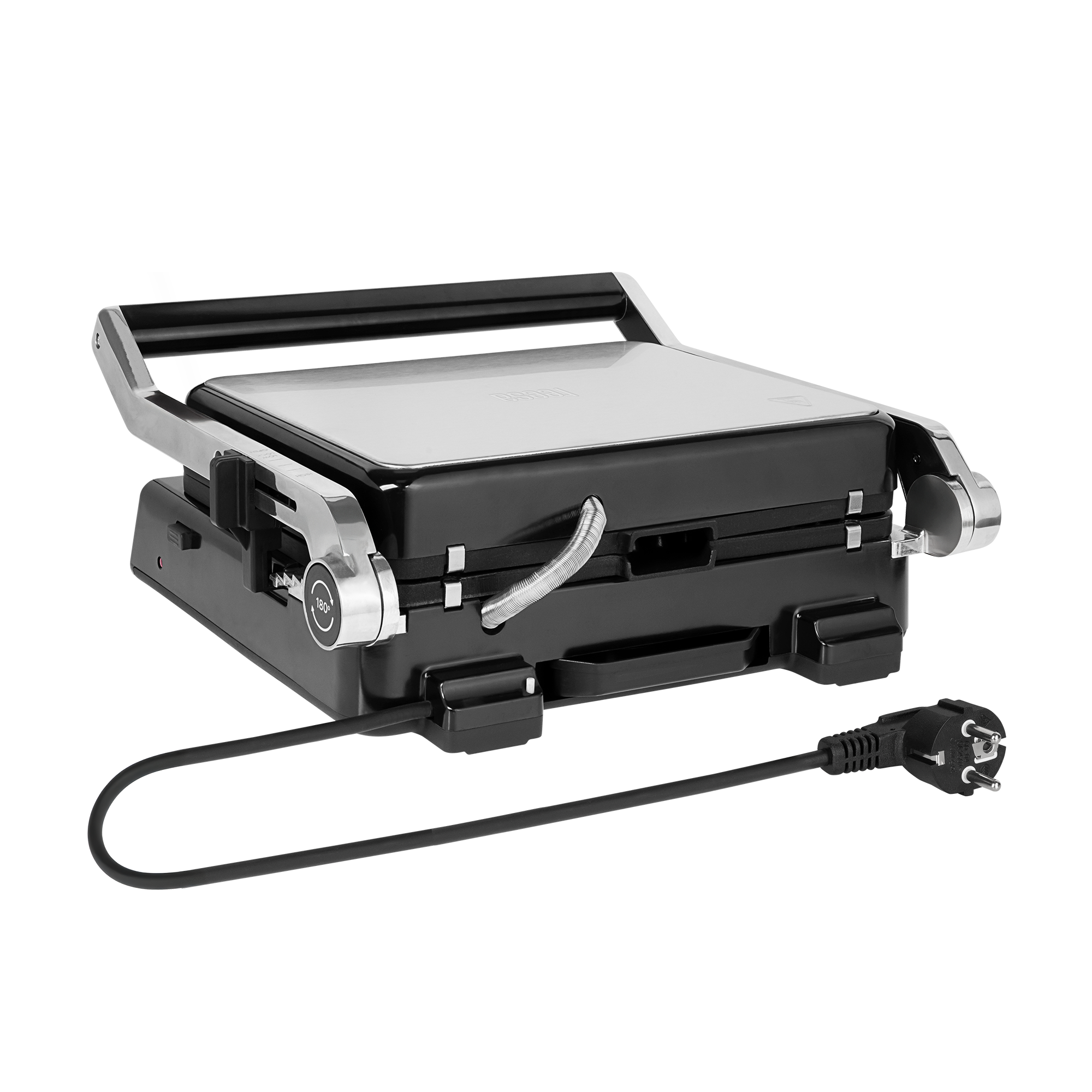 Zakres temperatury od 140 do 230°C pozwala przygotować zarówno chrupiące tosty, jak i solidnie wysmażone steki. Timer od 0 do 60 minut, ustawiany w 30-sekundowych odstępach, daje pełną kontrolę nad czasem obróbki. Możesz zająć się gośćmi lub rodziną, mając pewność, że grill sam wyłączy się po zakończeniu pracy.